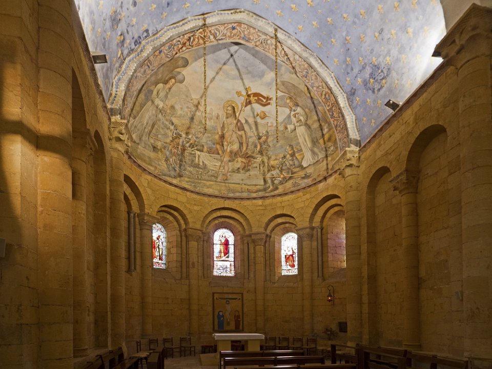 Choeur et fresque polychrome représentant la résurection du Christ