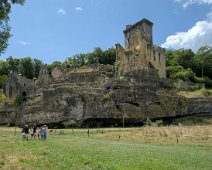 Château vu du pied de la colline, falaise dans laquelle est creusé le grand cluzeau