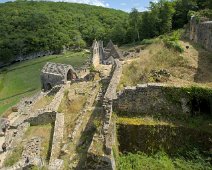 Vue sur la chapelle Saint Jean et la maison du four depuis le donjon