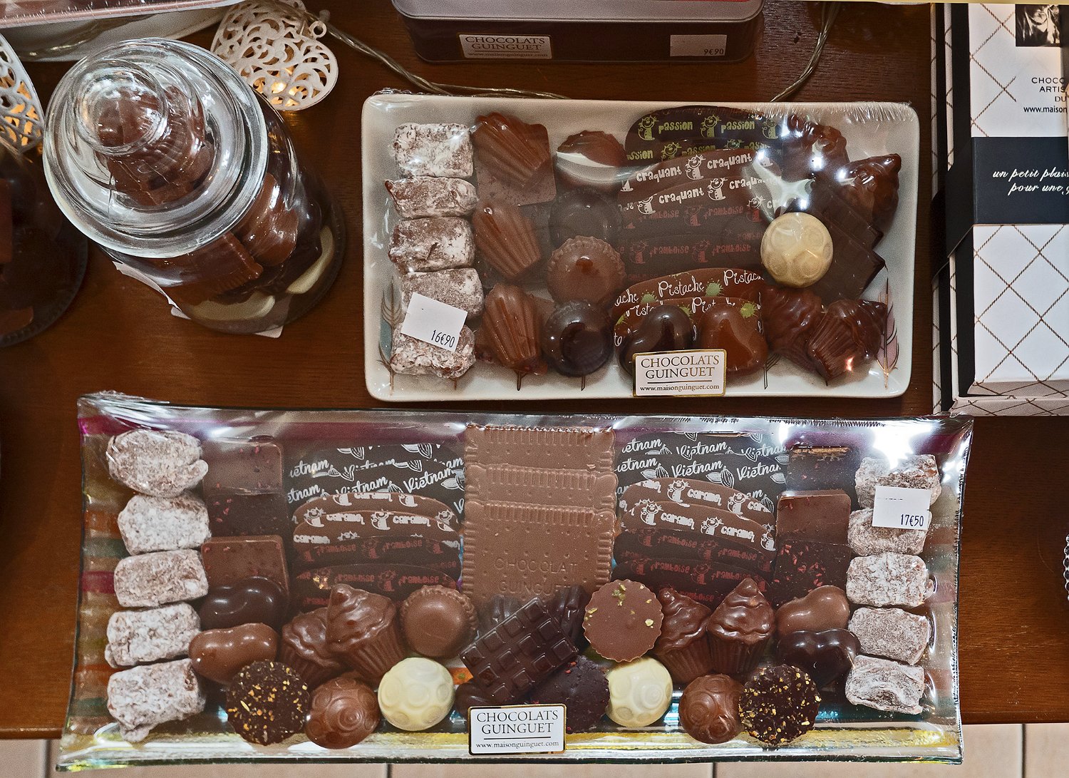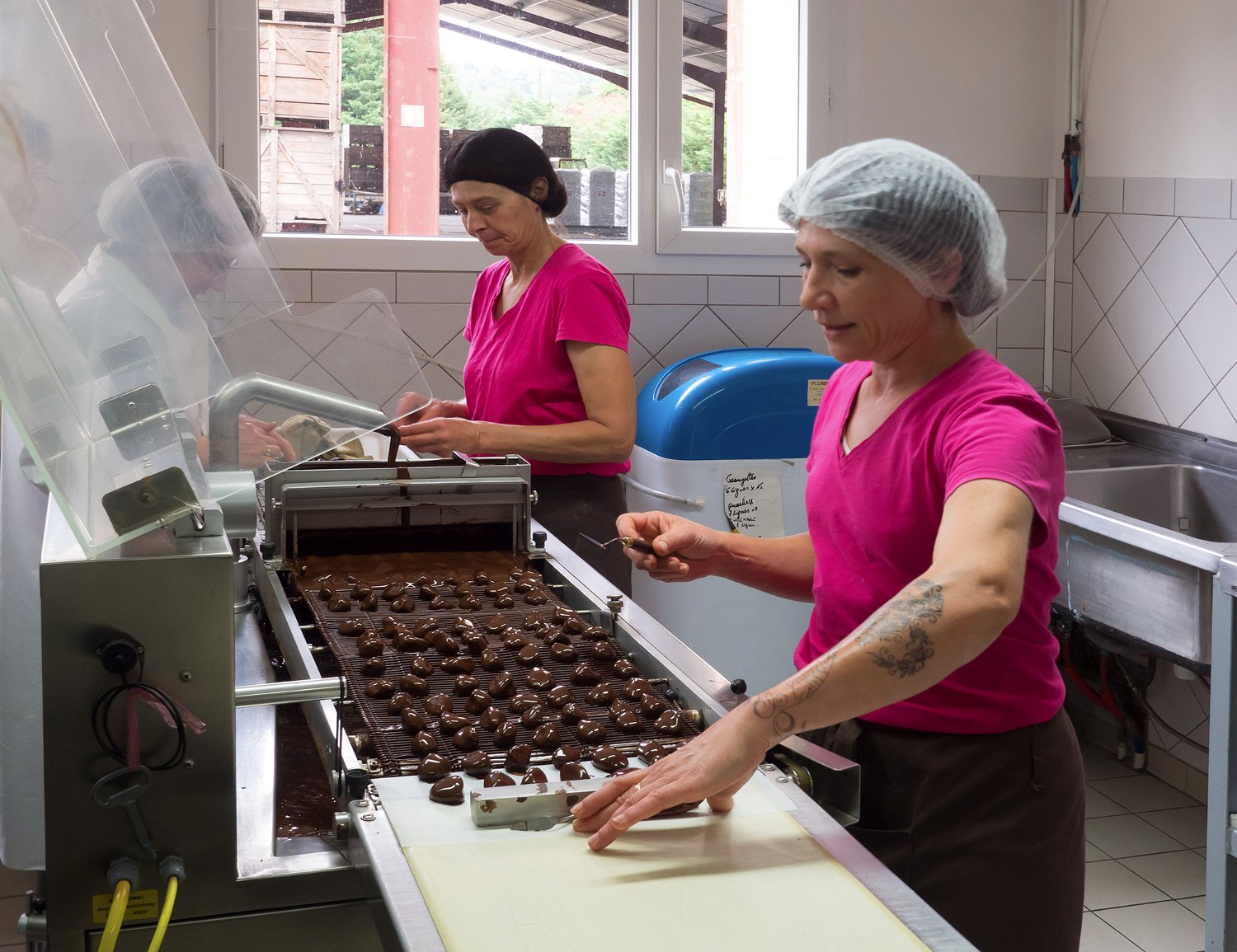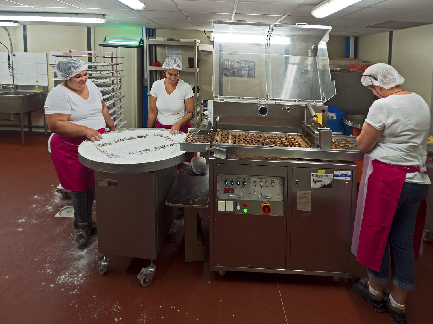 La maison Guinguet travaille le pruneau depuis trois générations. Après avoir démarré la production de pruneaux enrobés de chocolat, elle a diversifié sa production de gourmandises en chocolat. Si elle achète son chocolat en Belgique, elle produit elle même son praliné à partir de noisettes produites autour de l'usine