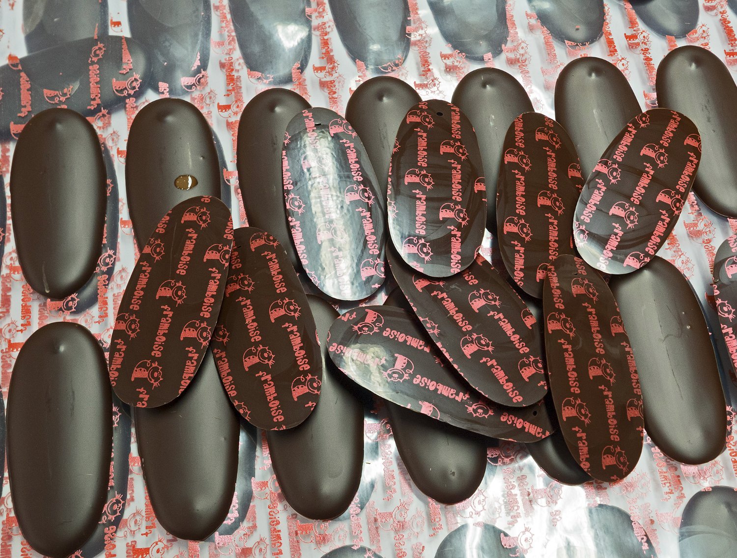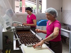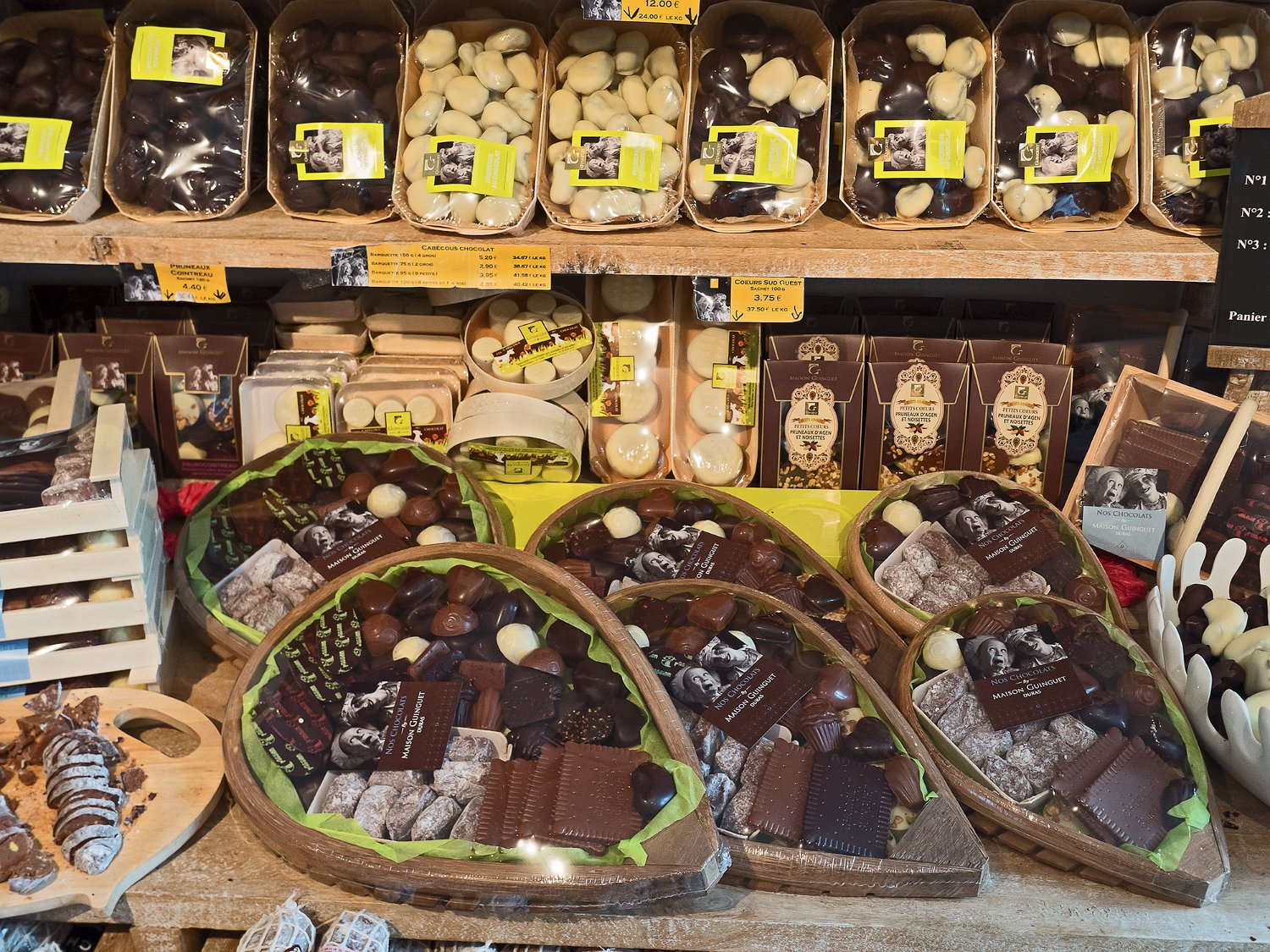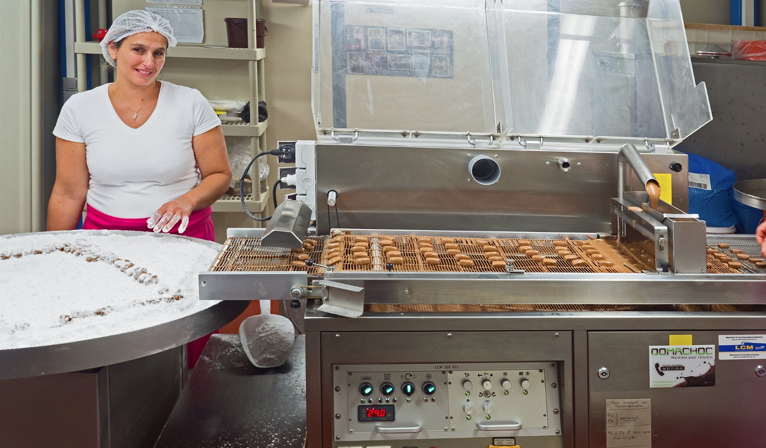 La maison Guinguet travaille le pruneau depuis trois générations. Après avoir démarré la production de pruneaux enrobés de chocolat, elle a diversifié sa production de gourmandises en chocolat. Si elle achète son chocolat en Belgique, elle produit elle même son praliné à partir de noisettes produites autour de l'usine