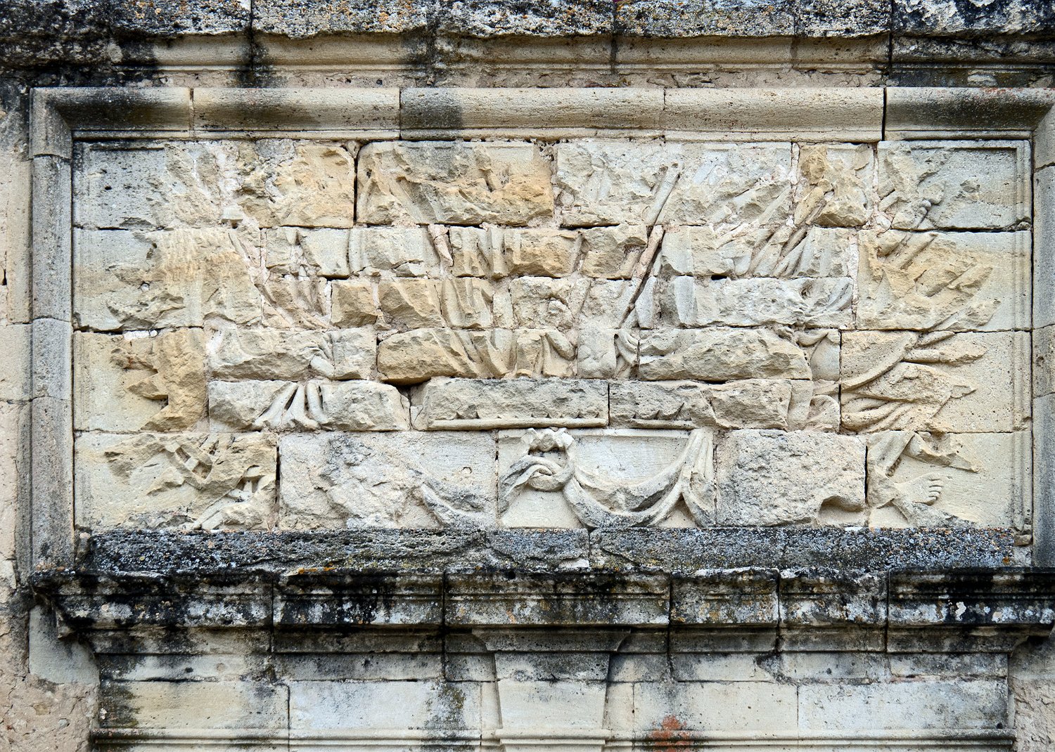 Table sculptée située au dessus de la porte d'entrée détruit pendant la révolution