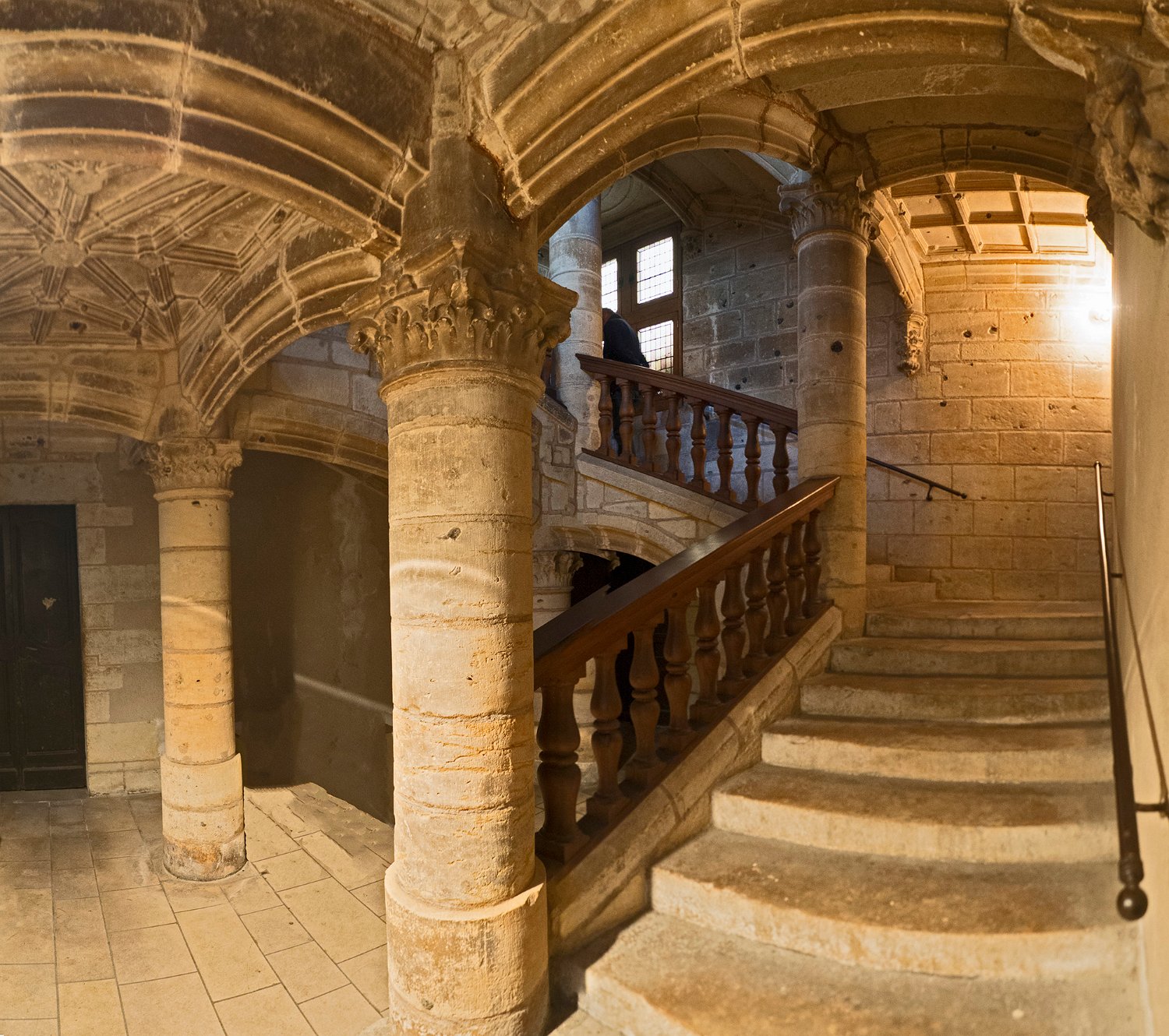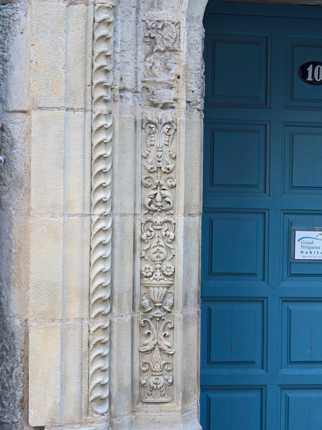 Escalier de la tour de l'hôtel Saint Astier, sculpture