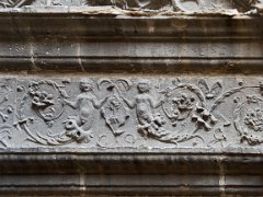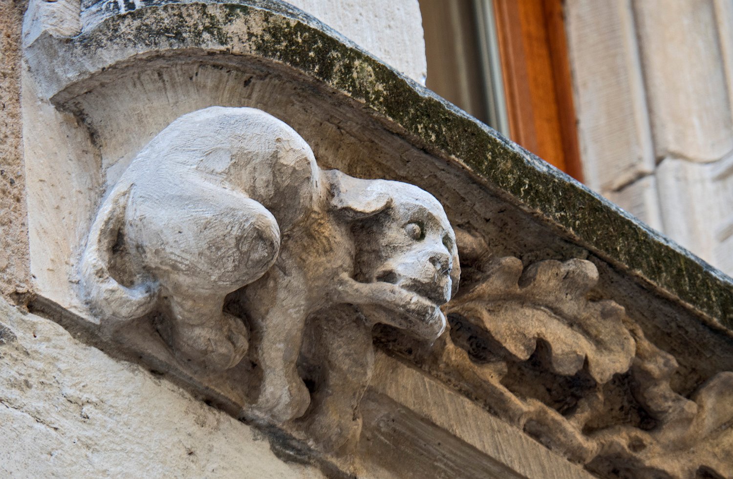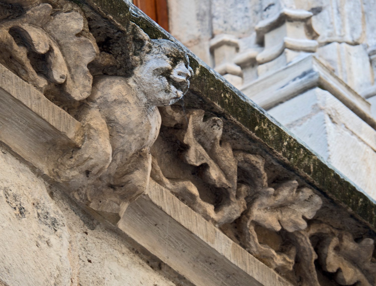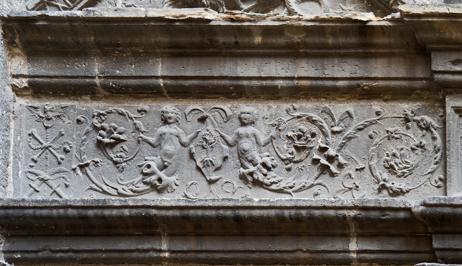 La maison du Pâtissier, sculpture sur le linteau de la porte