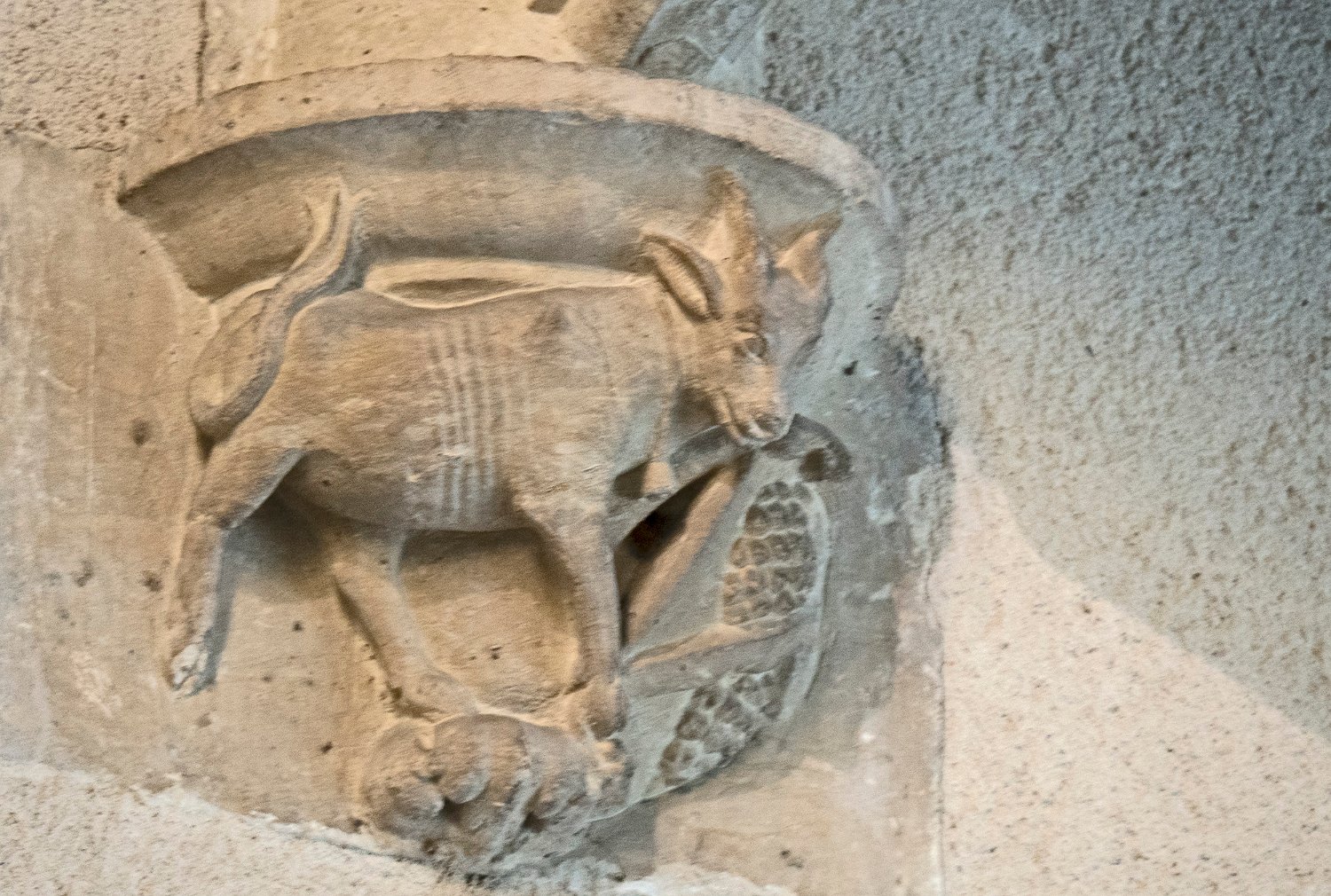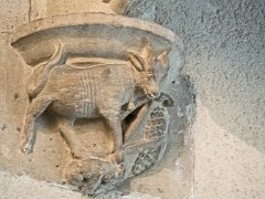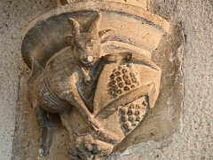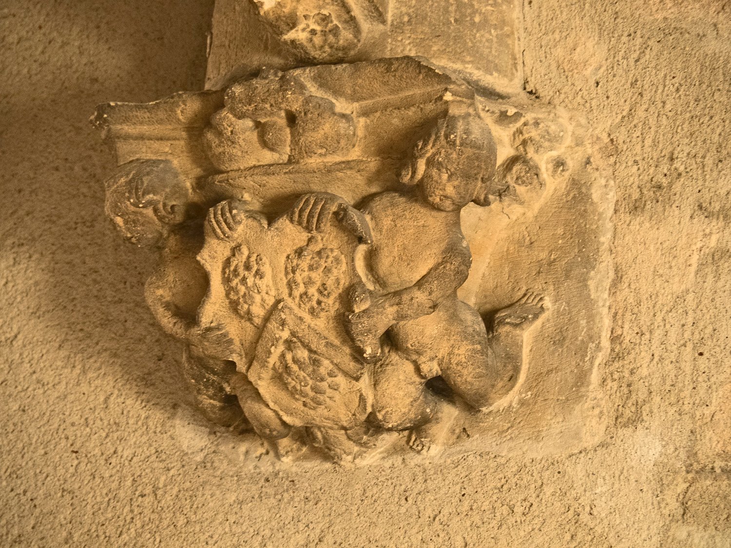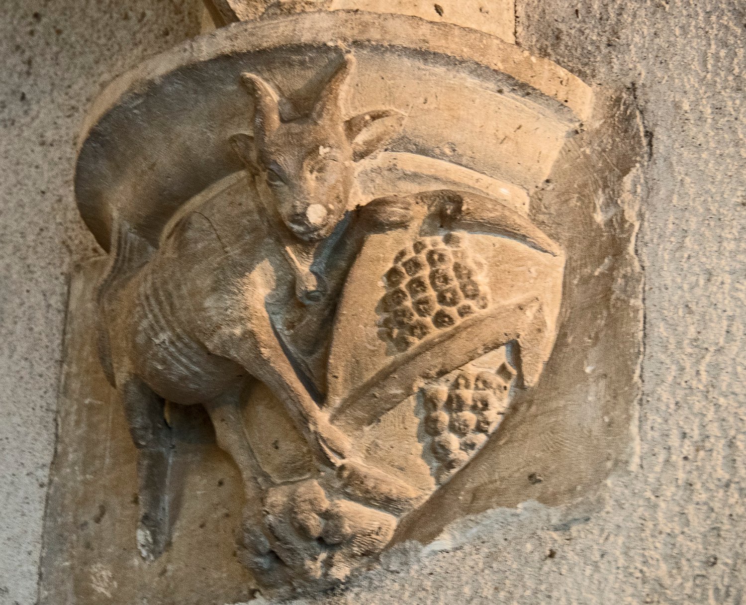 Escalier de la tour de l'hôtel Saint Astier, sculpture (cul de lampe avec armoiries)