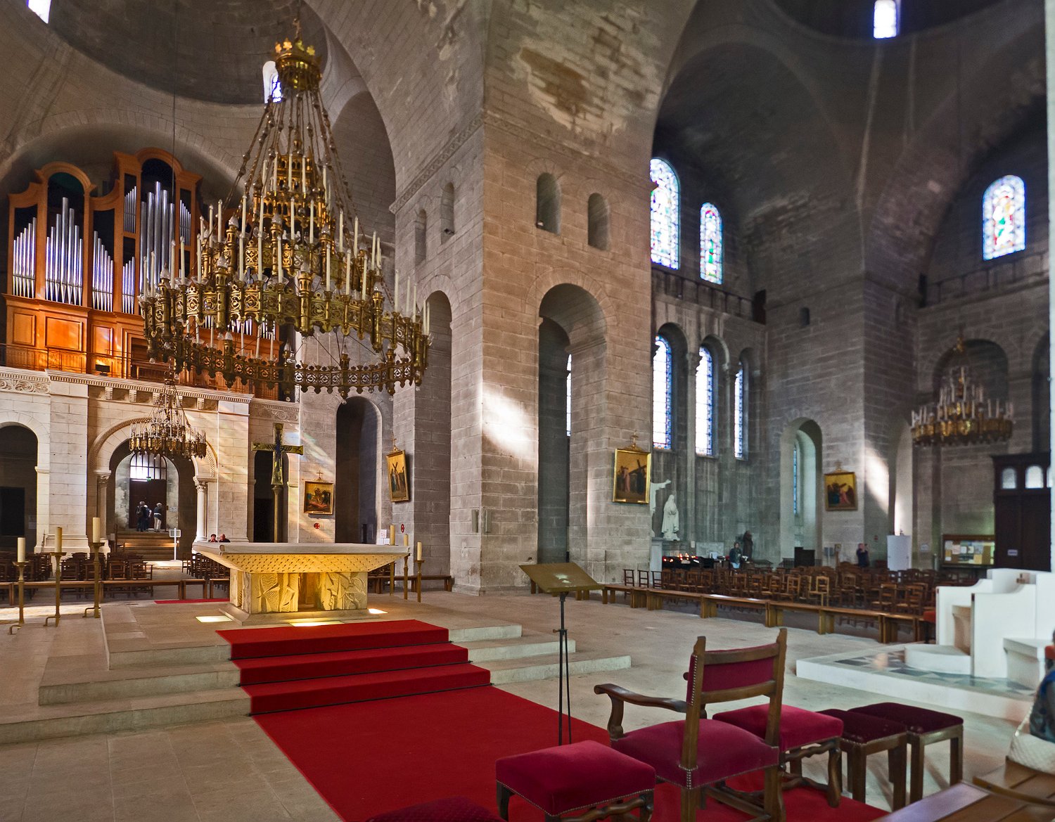 Cathédrale Saint-Front, vue sur le choeur depuis l'entrée de la place de la Claustre