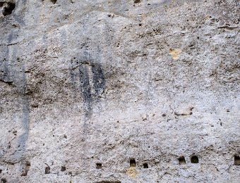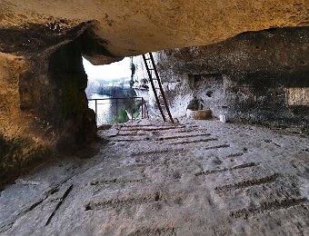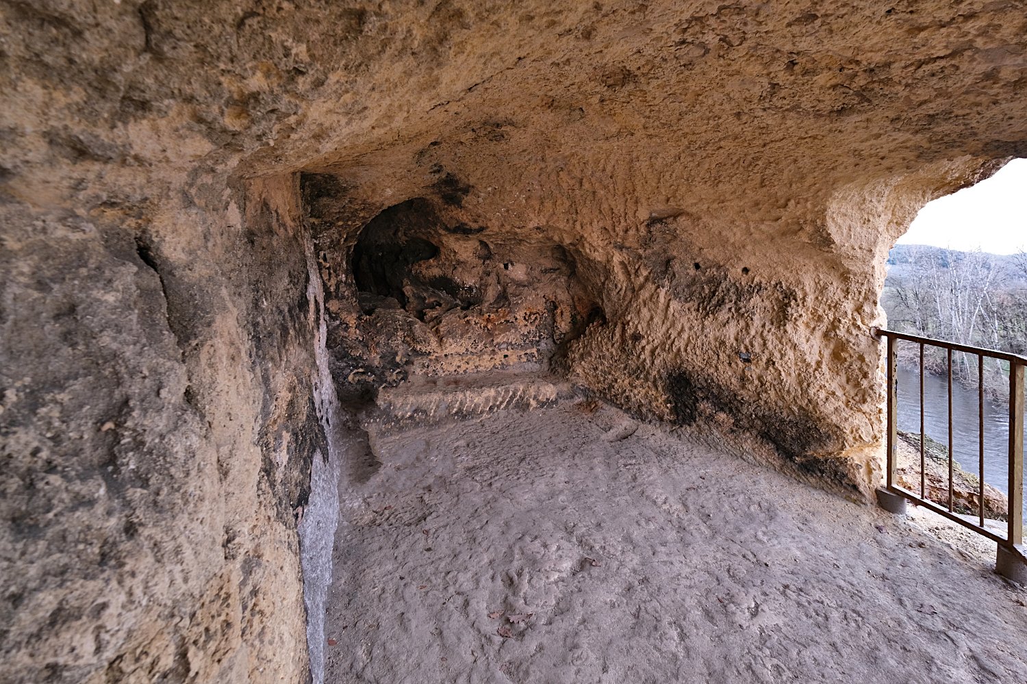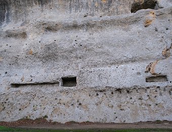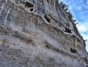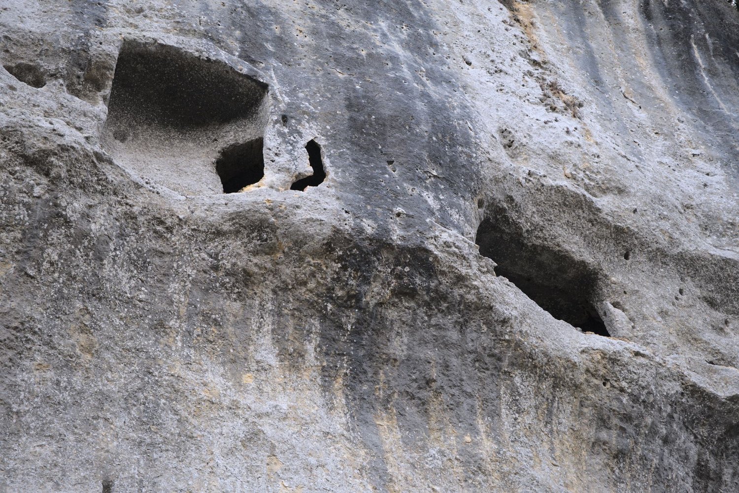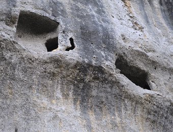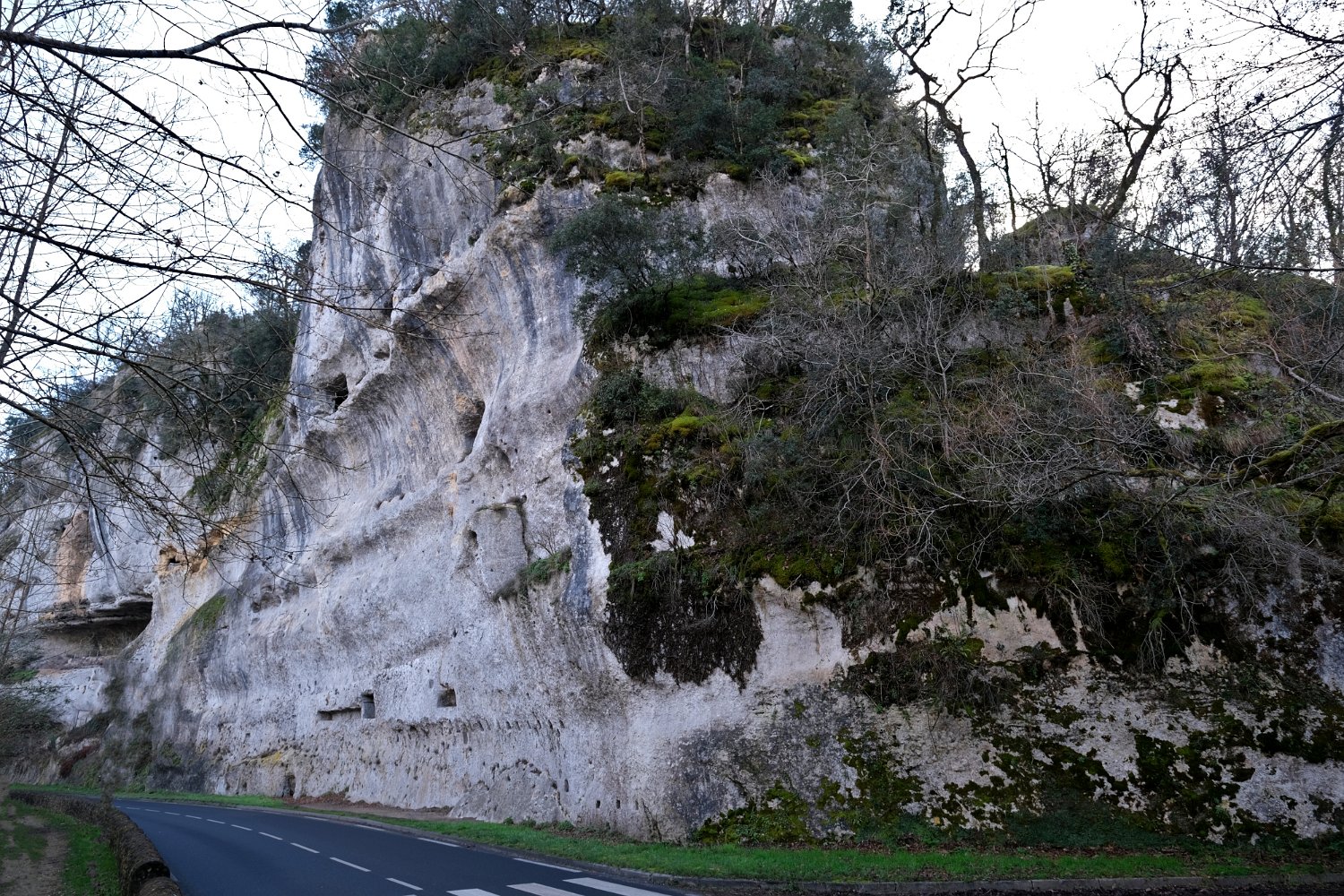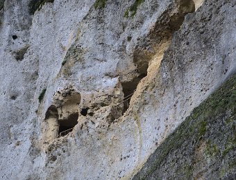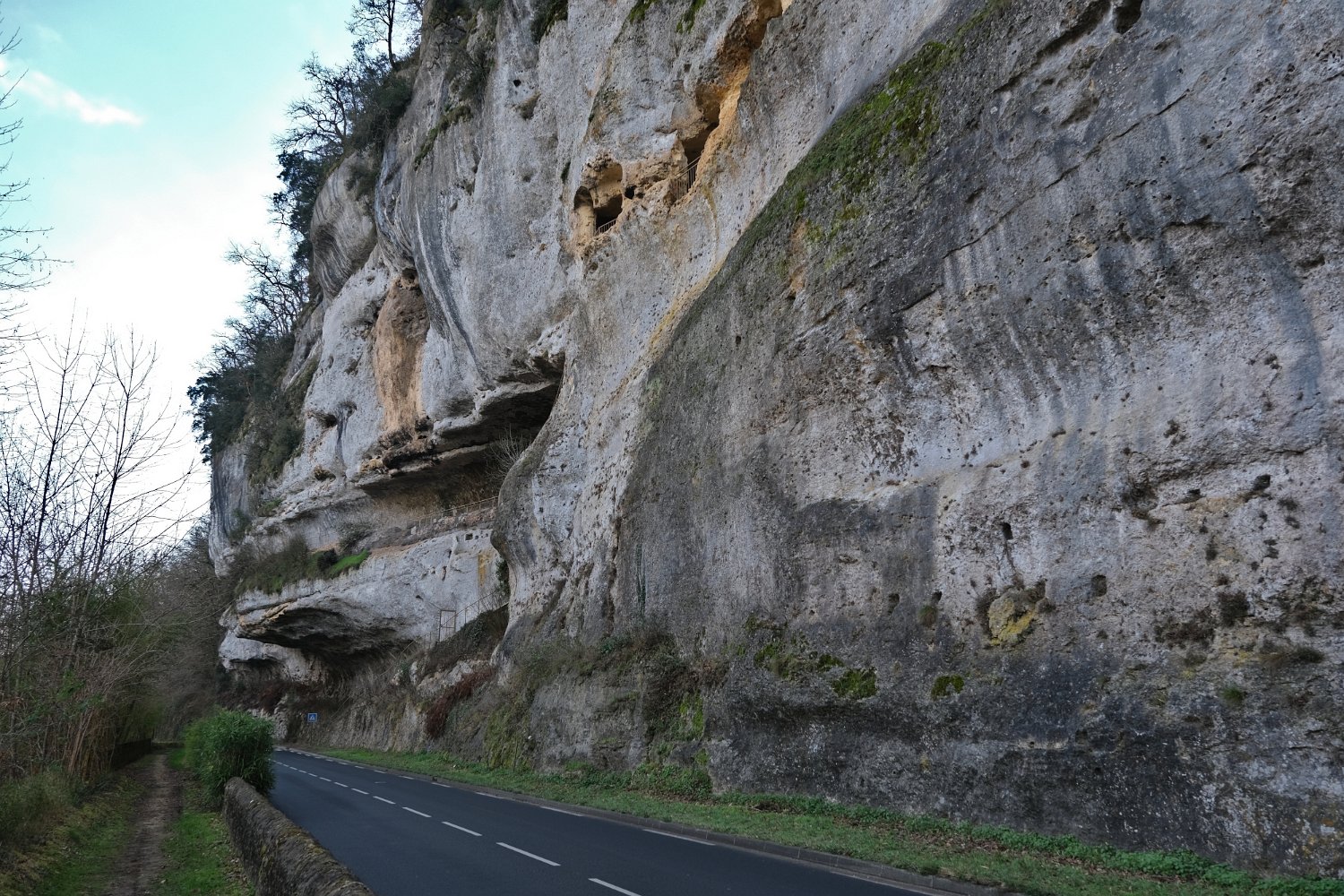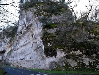 Vue des ouvertures des salles troglodytes du site depuis la route