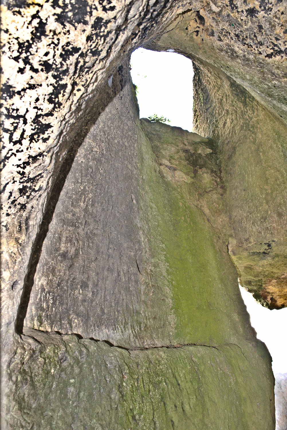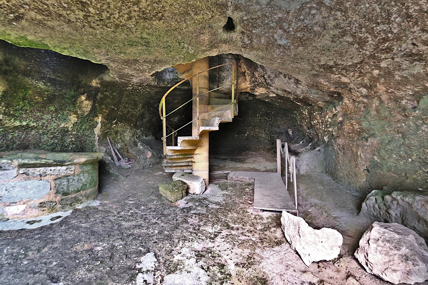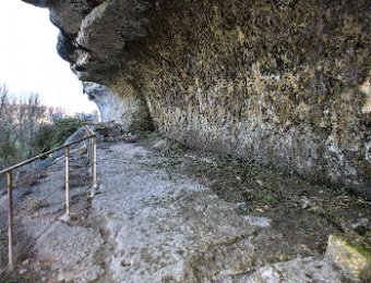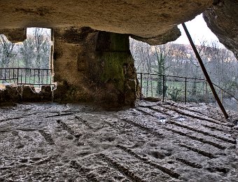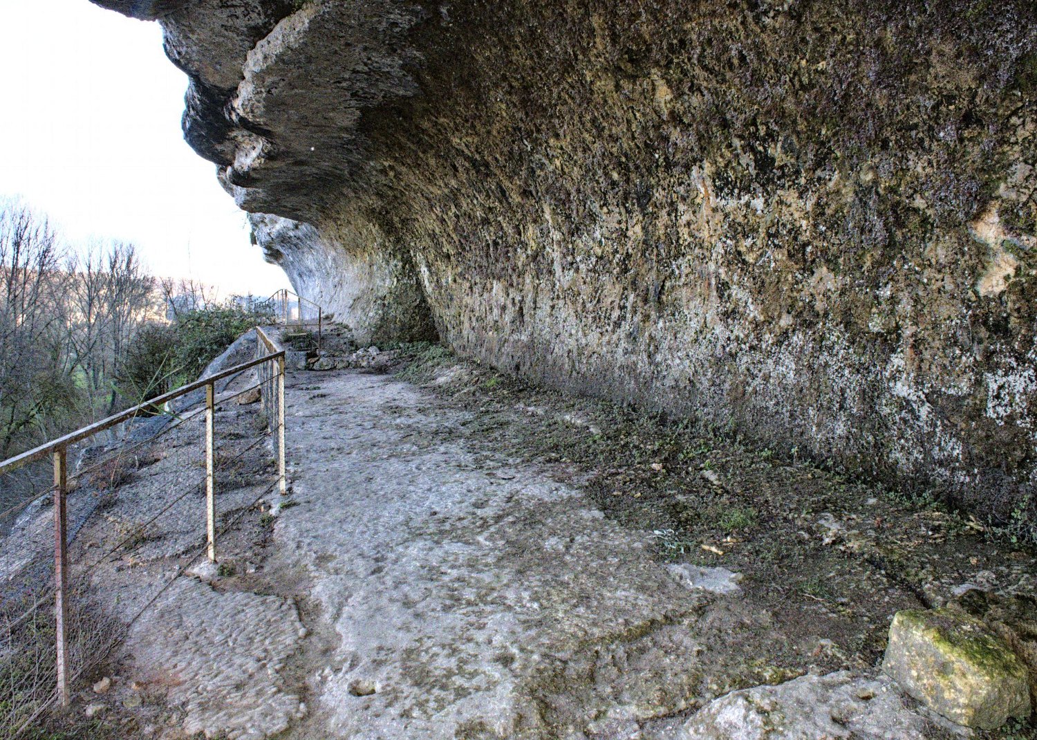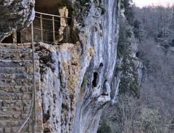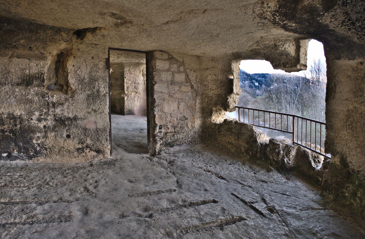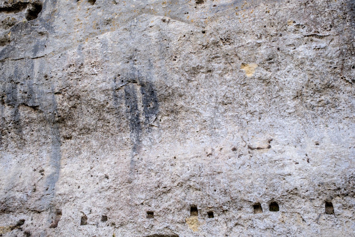 Vue des ouvertures des salles troglodytes du site depuis la route