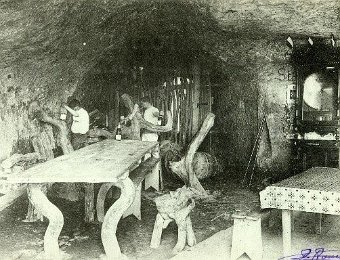 Carte postale du début du XXé siècle montrant l'ameublement de la 1ère salle et son plnacher à l'époque de Gabriel Gallou