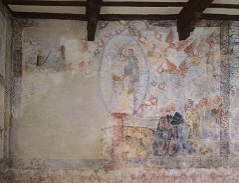 Porte d'entrée de l'église. Le tympan représente la Vierge avec l'Enfant flanquée de deux anges musiciens