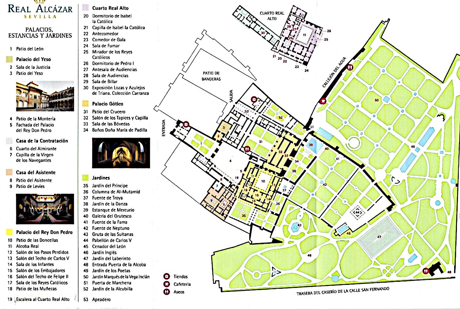Palais du roi Pedro ILe Palais Mudéjar de l’Alcazar, ou Palais de Pedro I (Pierre 1er) Il fut construit à l’initiative du roi entre 1356 et 1366.Il devait servir d’édifice privé au roi, face au caractère plus protocolaire que représentait le Palais Gothique de l’Alcazar, érigé au siècle précédent par Alphonse X. L’intérieur se structure autour de deux espaces : un premier dédié à la vie officielle qui se situe autour du Patio de la Doncellas (demoiselles), et un autre dédié à la vie privée autour du Patio de las Muñecas. 33 images |