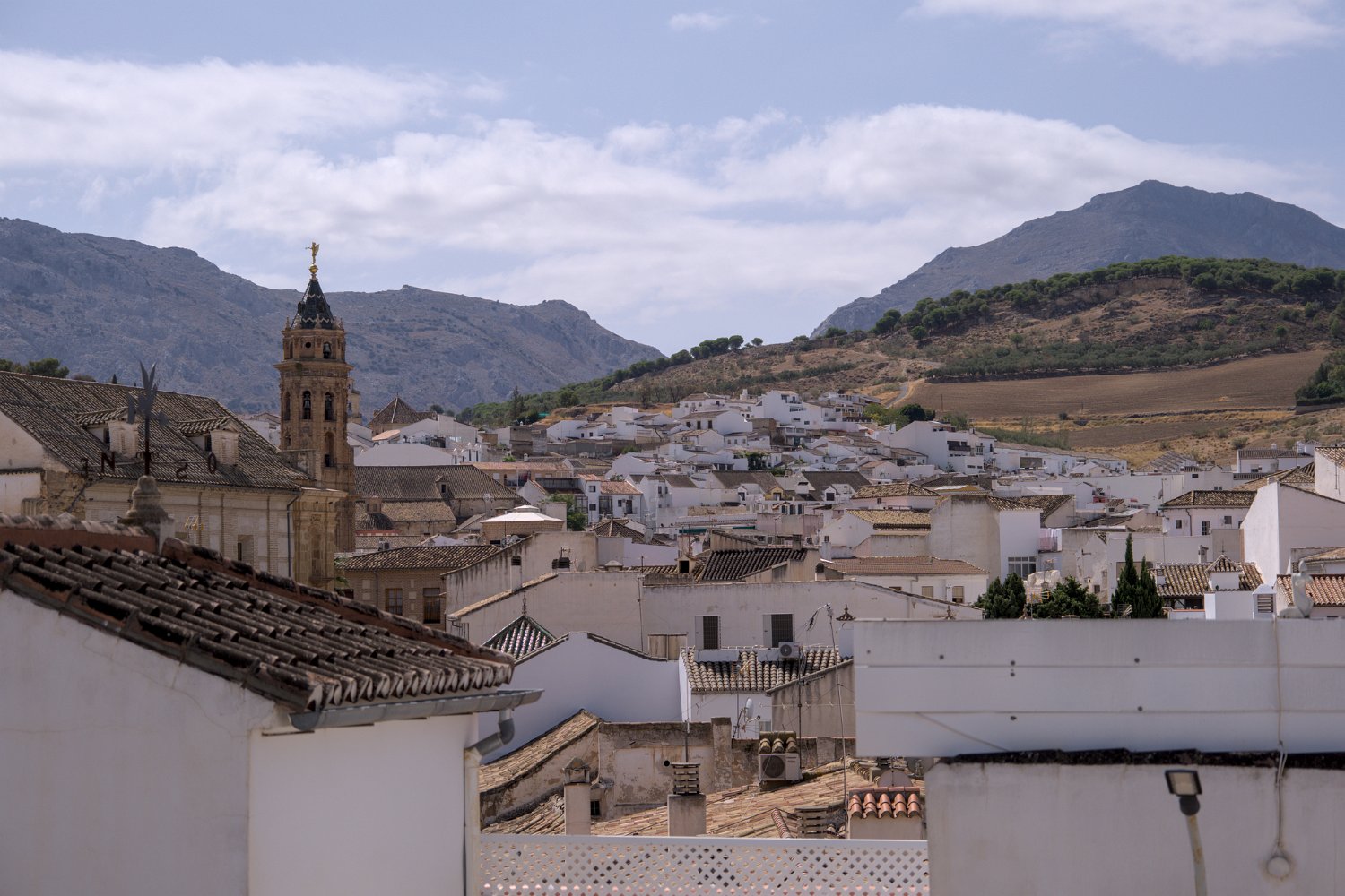 Vue sur la ville. A gauche le clocher de l'église de San Sebastian