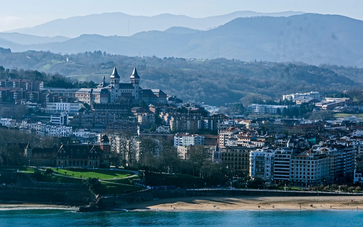 Au premier plan à gauche, palais de Miramar et plage de Ondarreta, à l'arrière plan quartier d'Antiguo