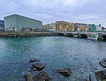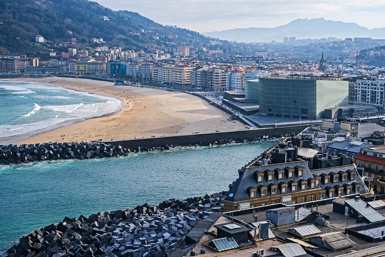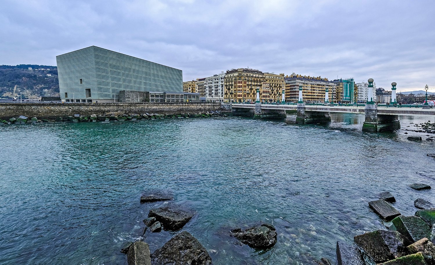 Estuaire du fleuve Urumea, quartier du Gros, plage de la Zurriola et cubes de Moneo de Kursall