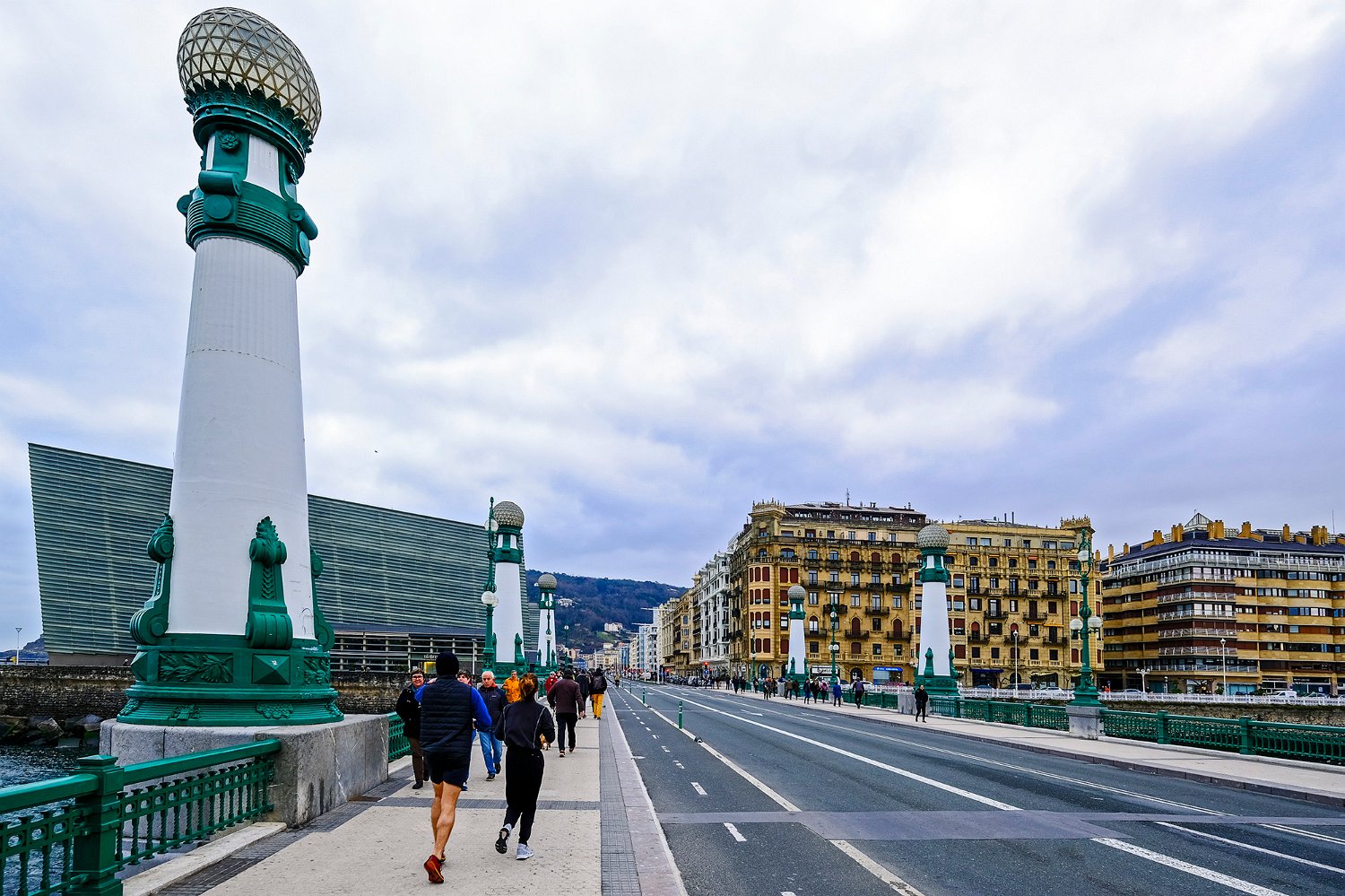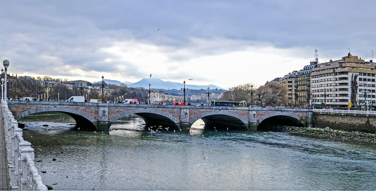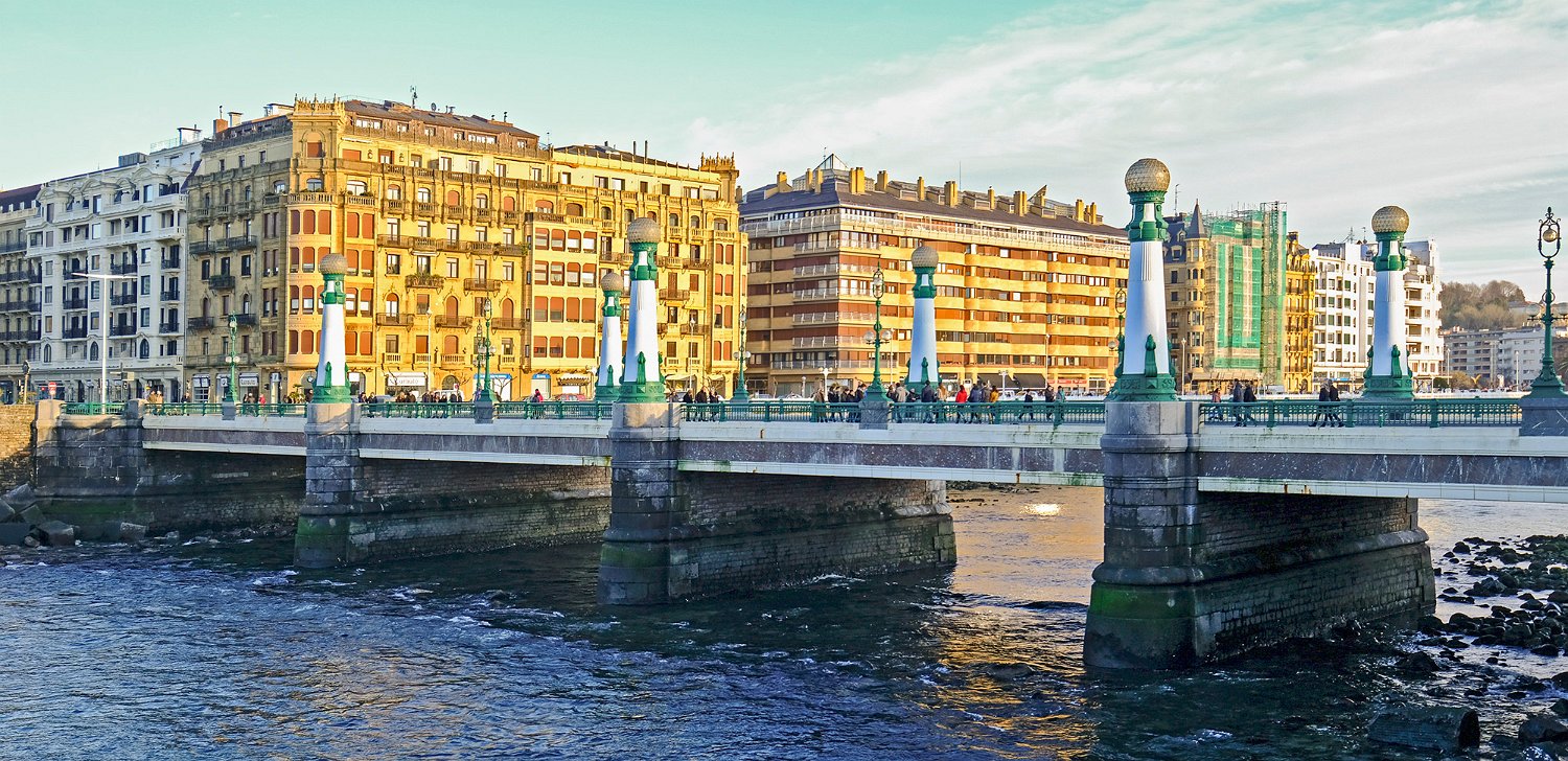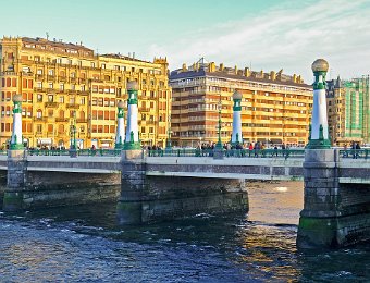 San Sebastiàn est traversée par un fleuve qui se jette dans le golfe de Gascogne. Les deux rives sont aménagées en vastes promenades et bordées d'immeubmes bourgeois. Six ponts construits à différentes époques et de styles différents permettent de le franchir et de maintenir l'unité de la ville.