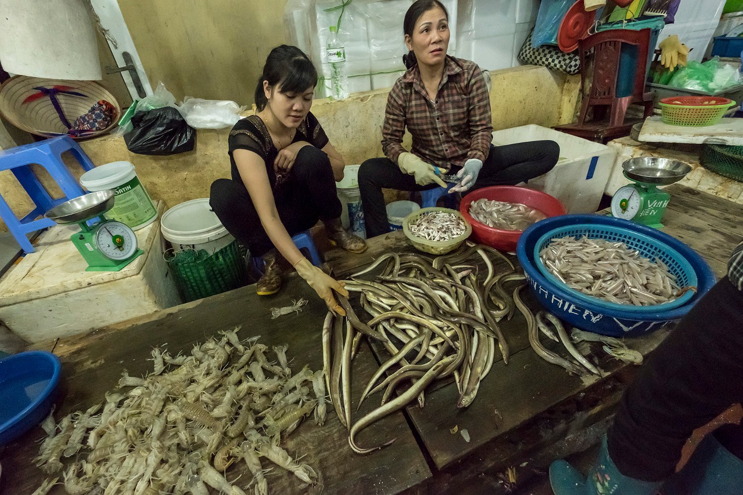 Produits de la mer au marché de Cat Ba (crevettes)