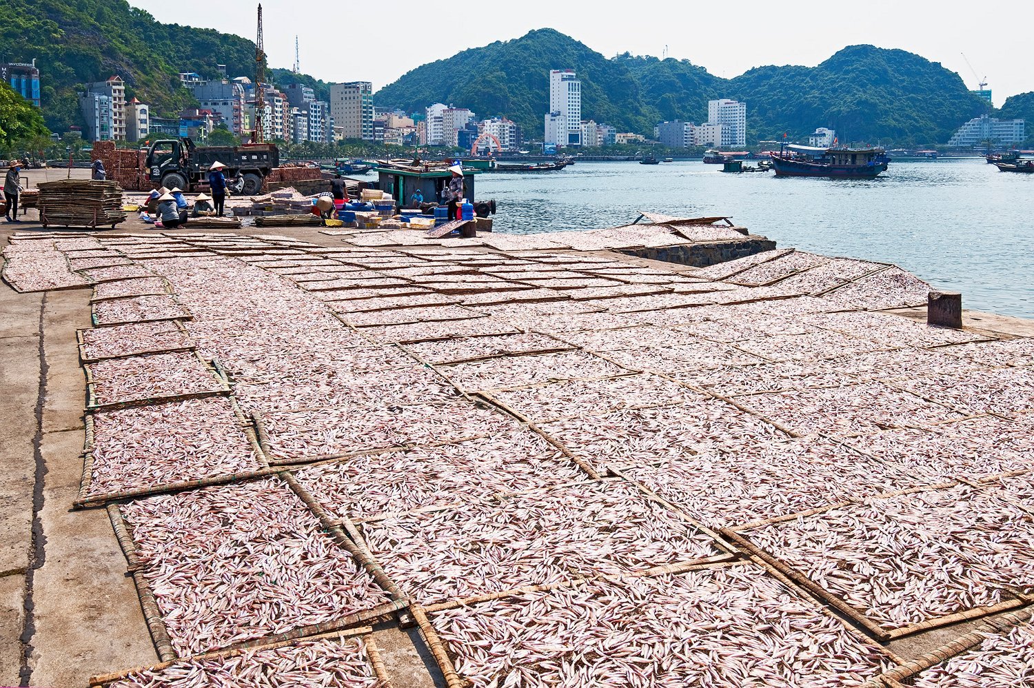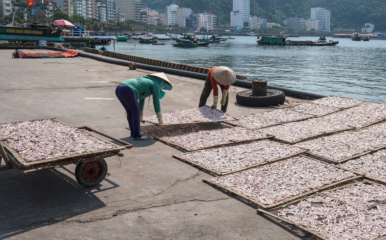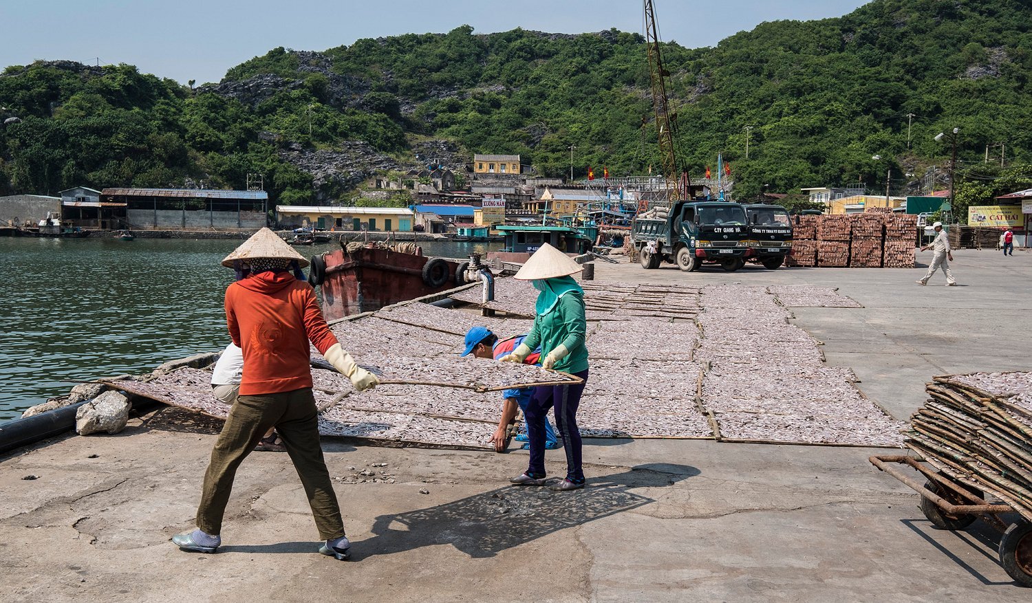 Disposition des claies sur le quai du port