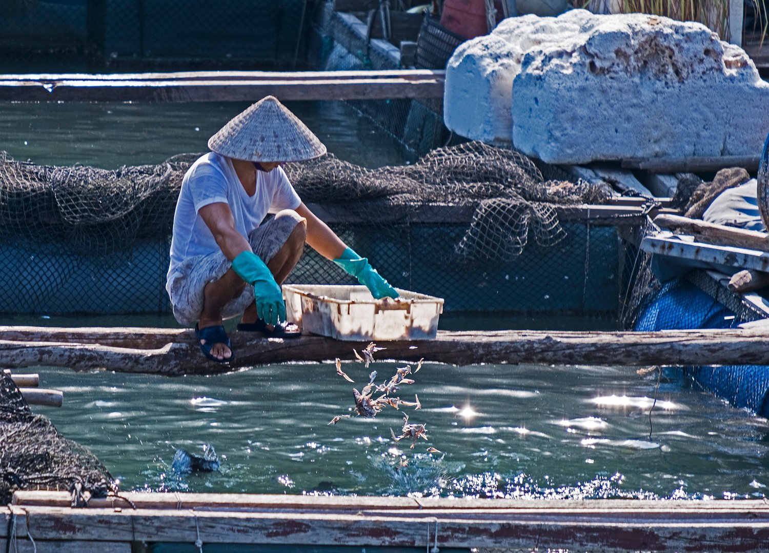 Chantier de préparation des poissons pour la fabrication du nuoc mâm