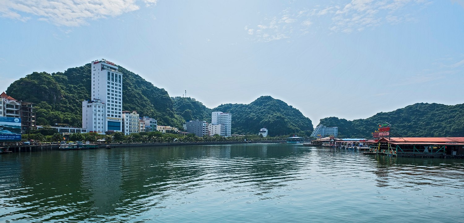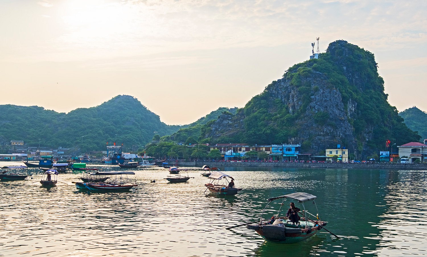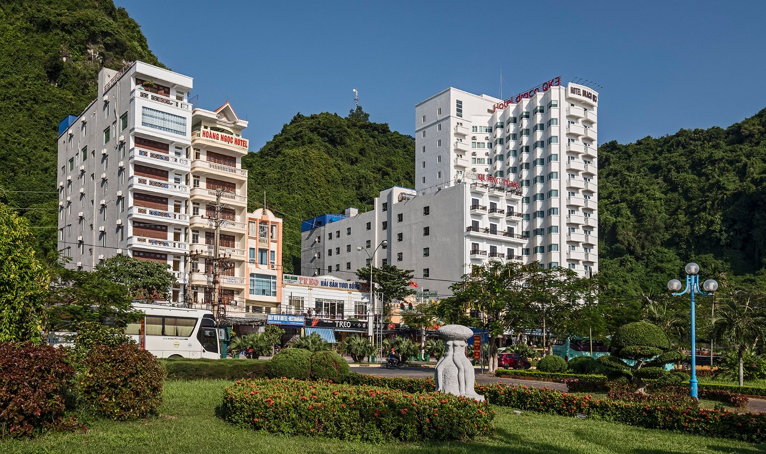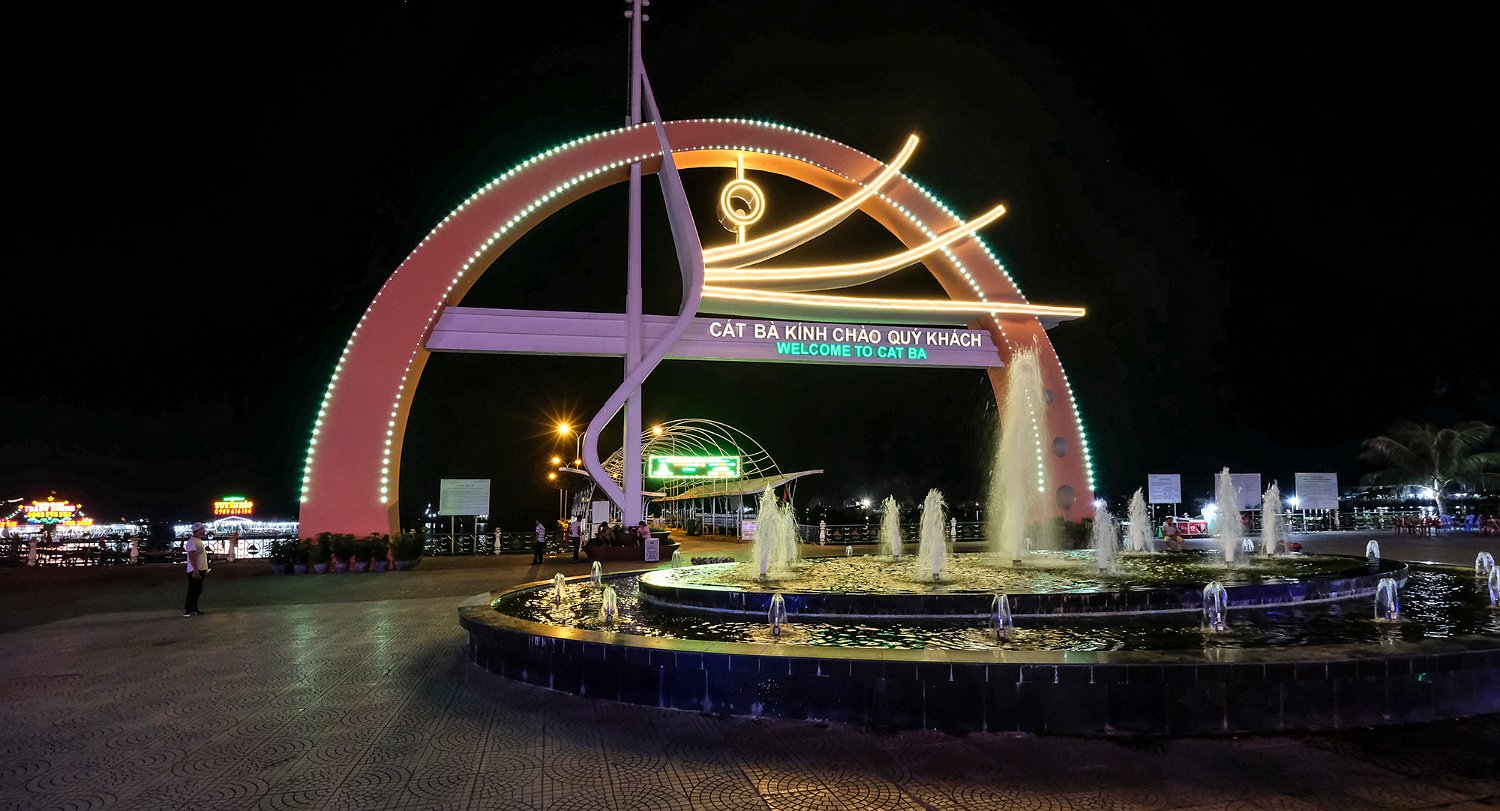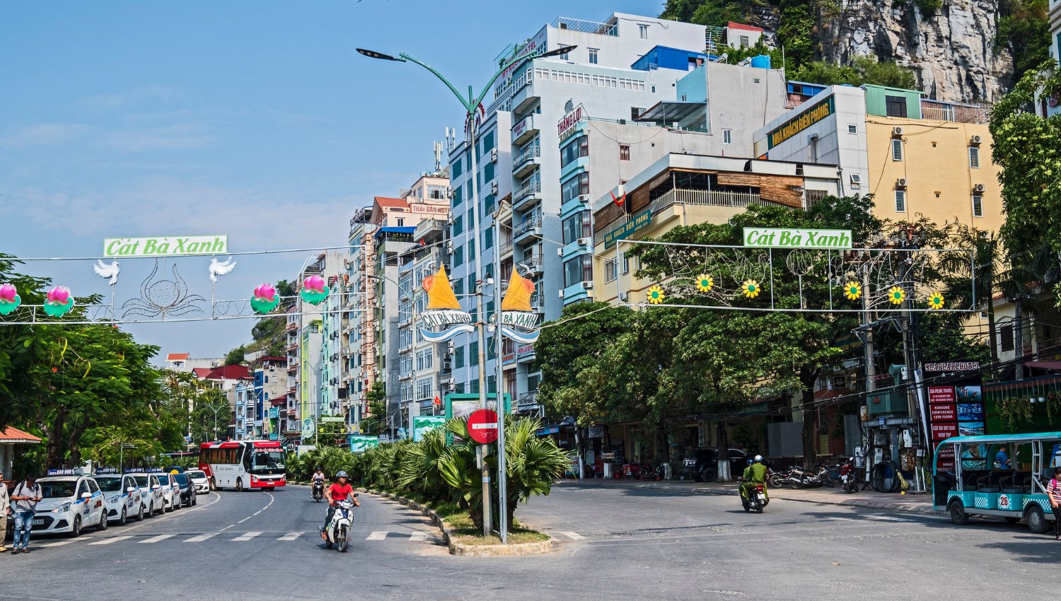 La ville de Cat Ba est située au sud de l'île. Elle héberge 12000 habitants permanents et accueille 350000 touristes chaque année. C'est une ville touristique qui étale ses immeubles modernes en front de mer. Celle-ci est bordée d'une large et agréable promenade qui permet de longer la baie et le port.