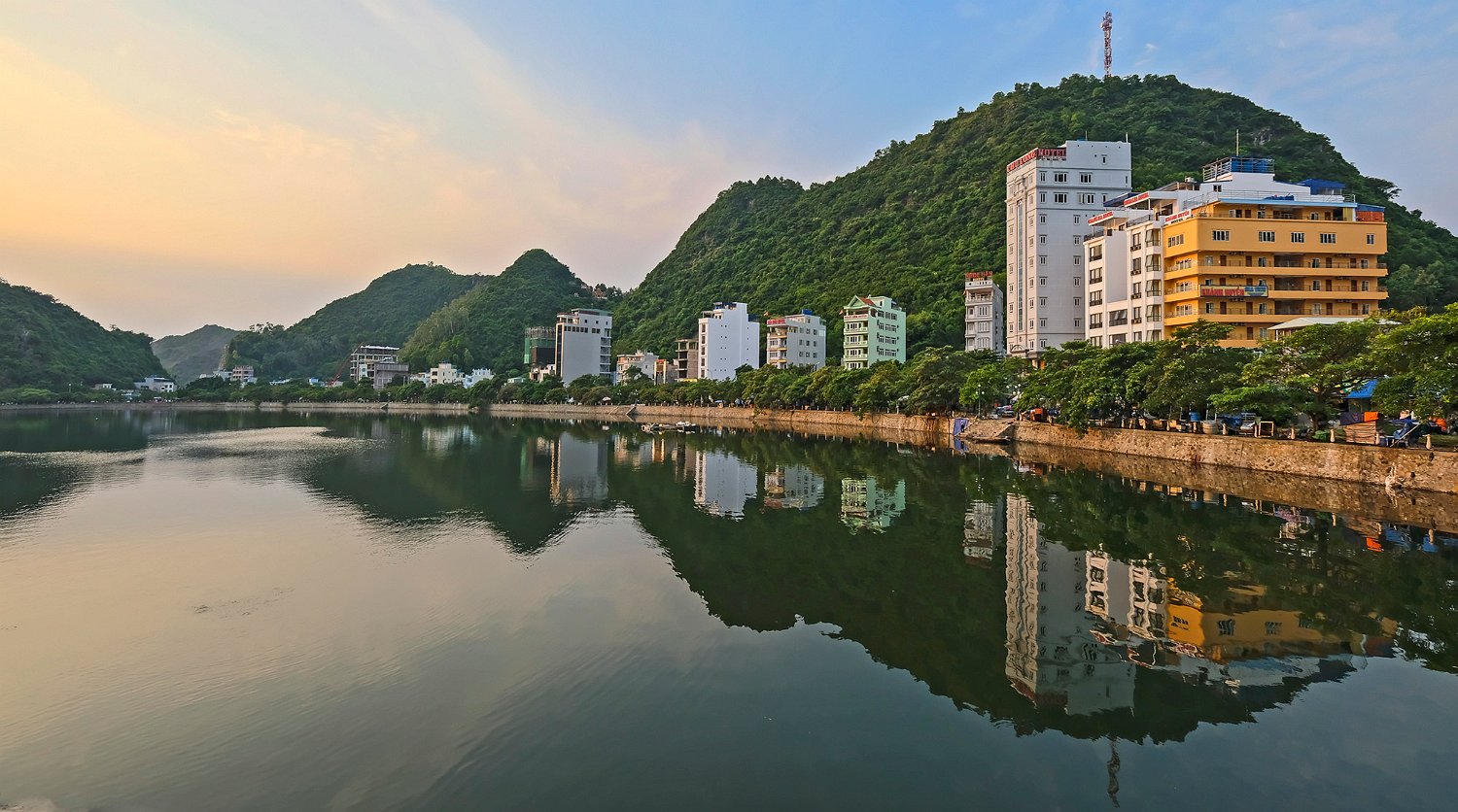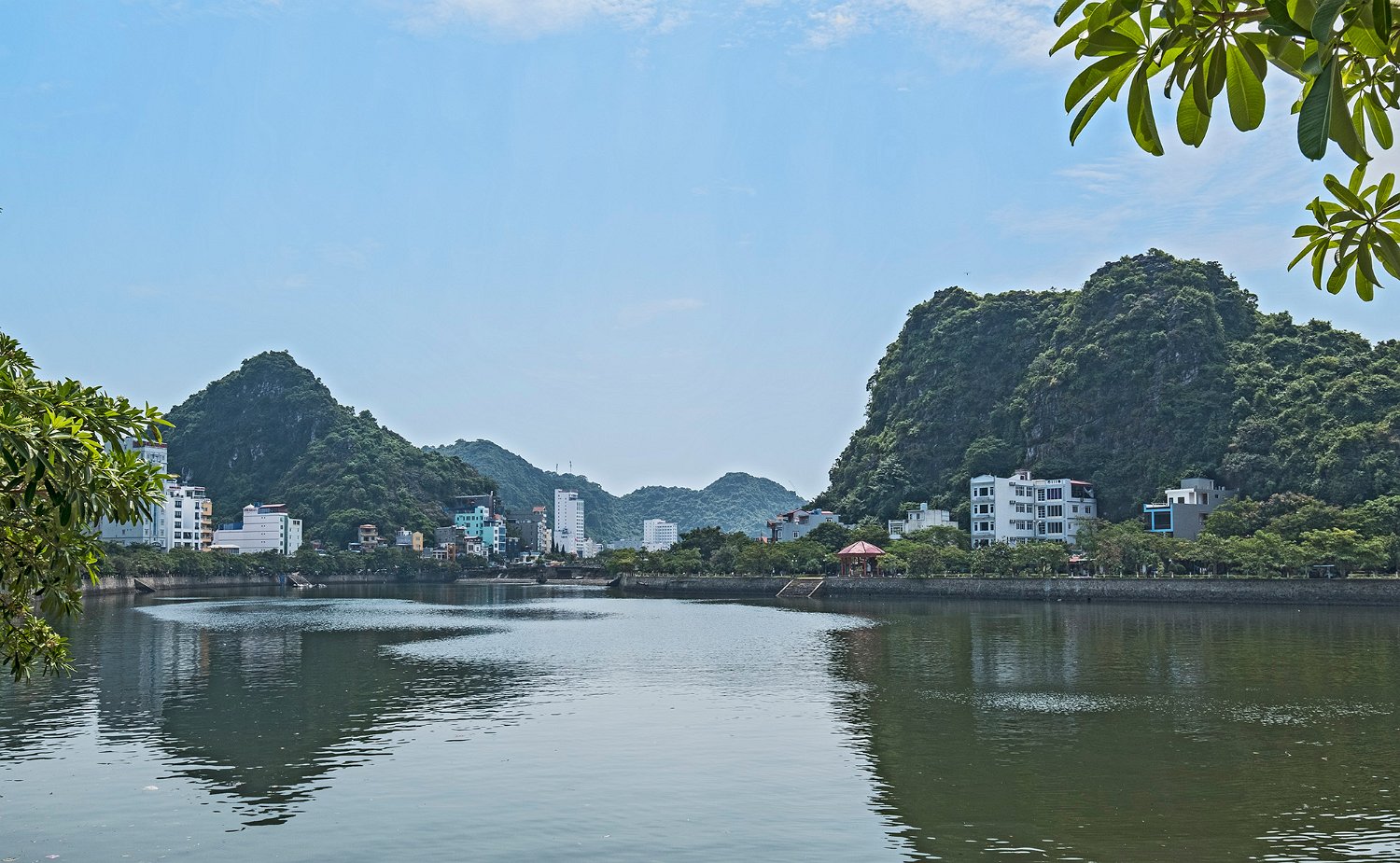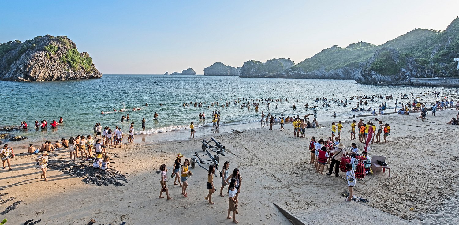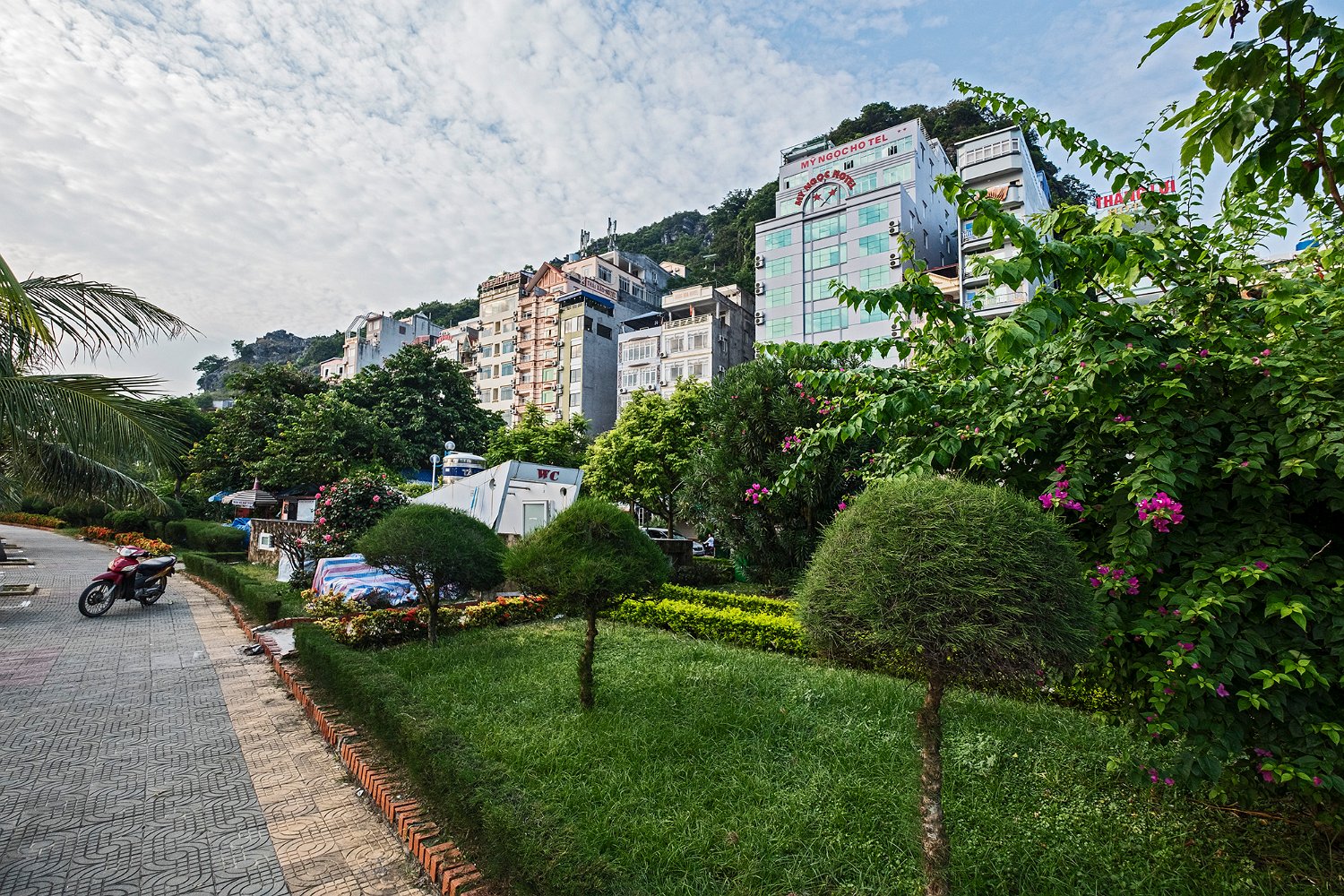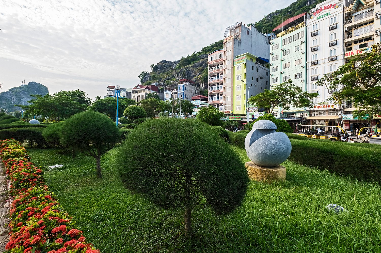 La ville de Cat Ba est située au sud de l'île. Elle héberge 12000 habitants permanents et accueille 350000 touristes chaque année. C'est une ville touristique qui étale ses immeubles modernes en front de mer. Celle-ci est bordée d'une large et agréable promenade qui permet de longer la baie et le port.