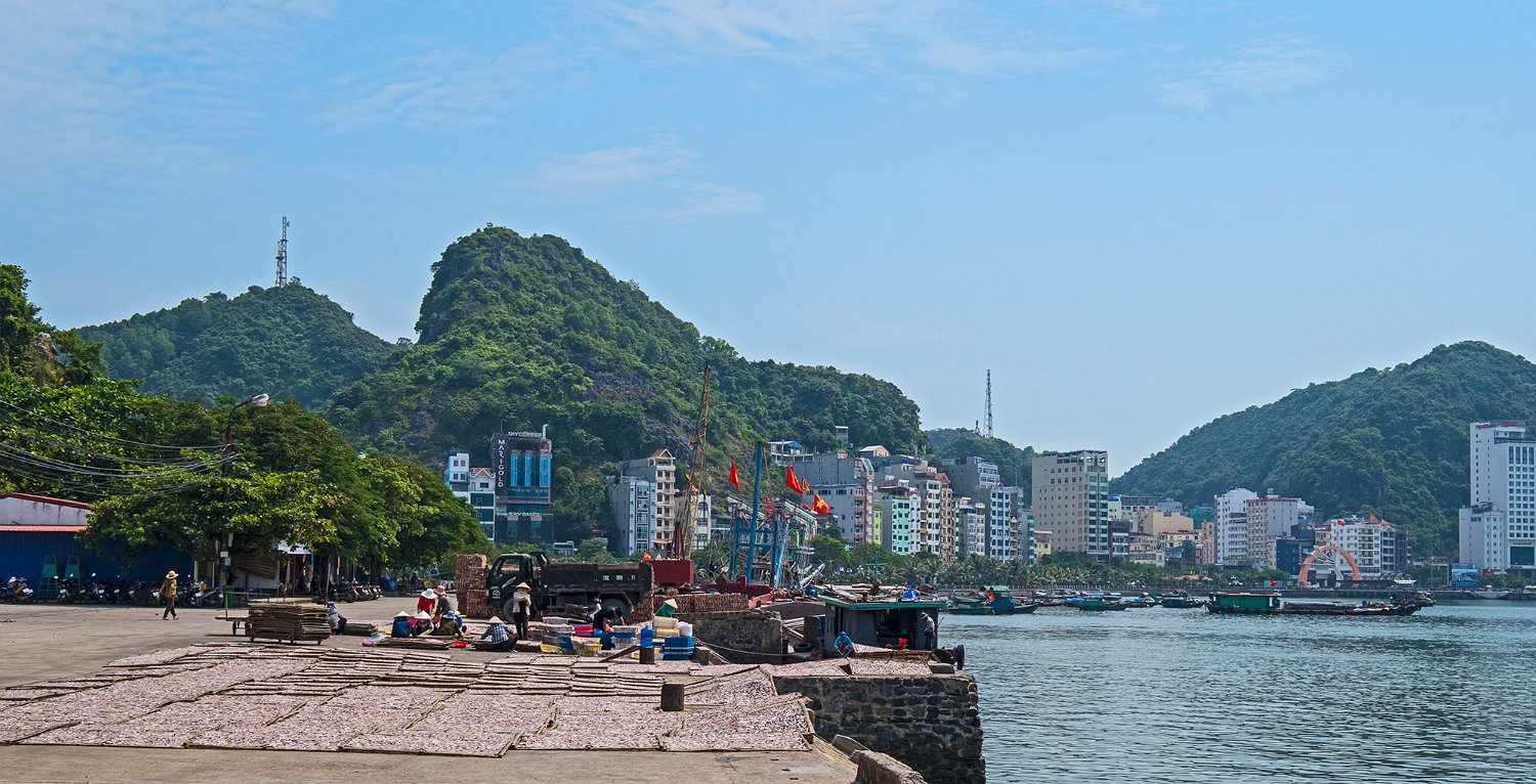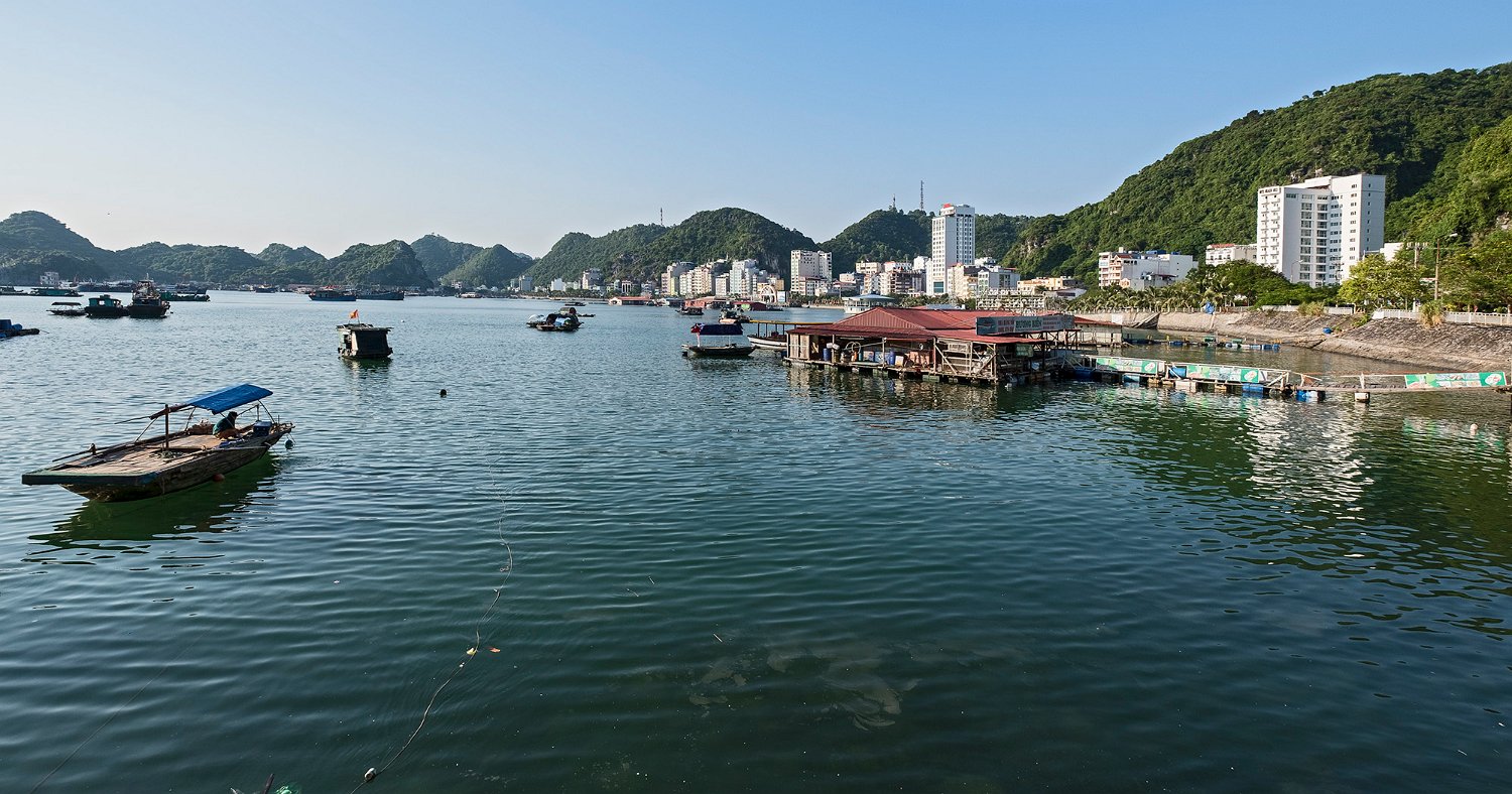 Baie de Cat Ba La ville de Cat Ba La ville de Cat Ba vue du fond de la baie La ville de Cat Ba vue du port