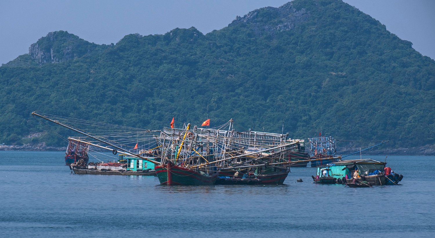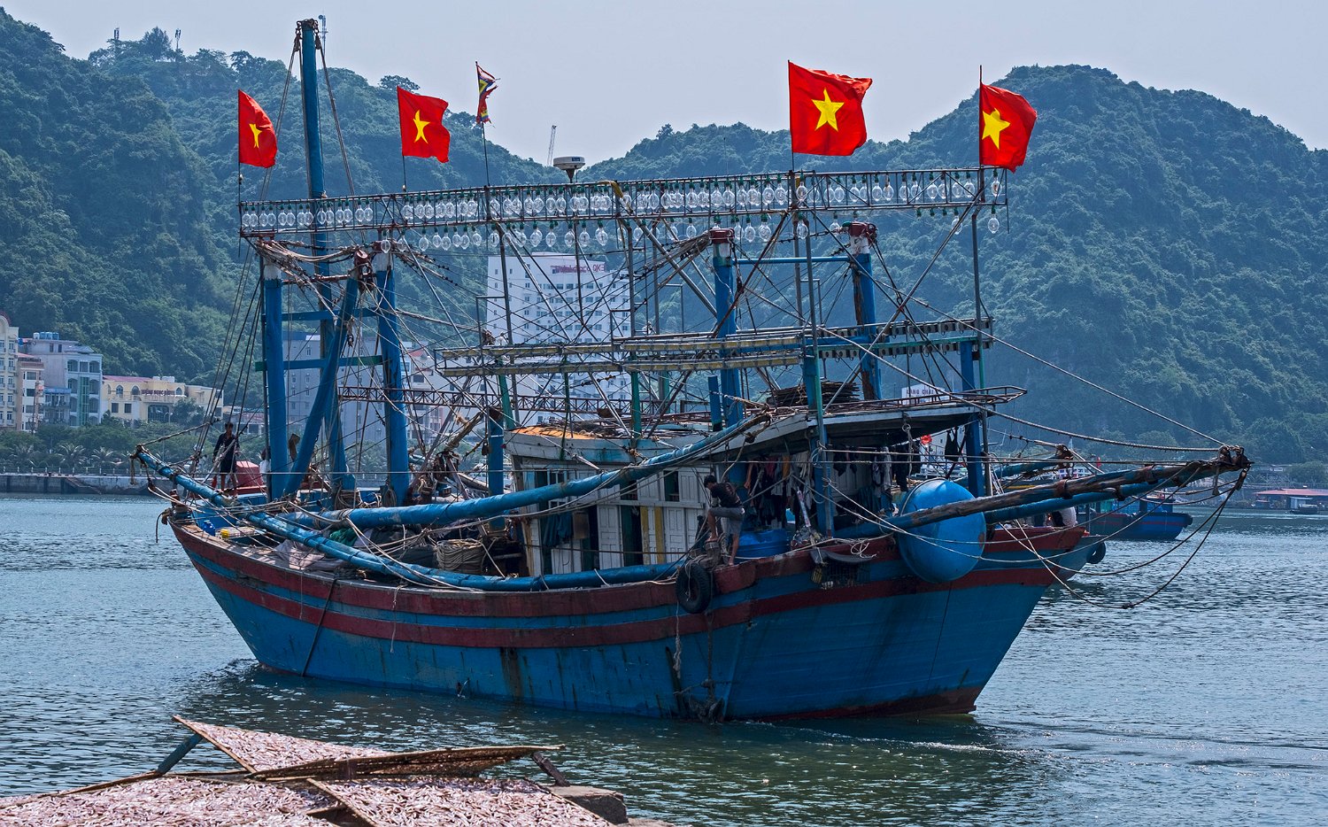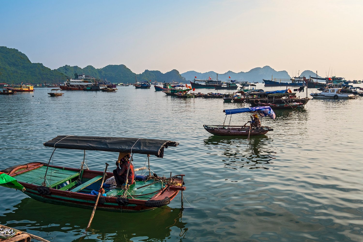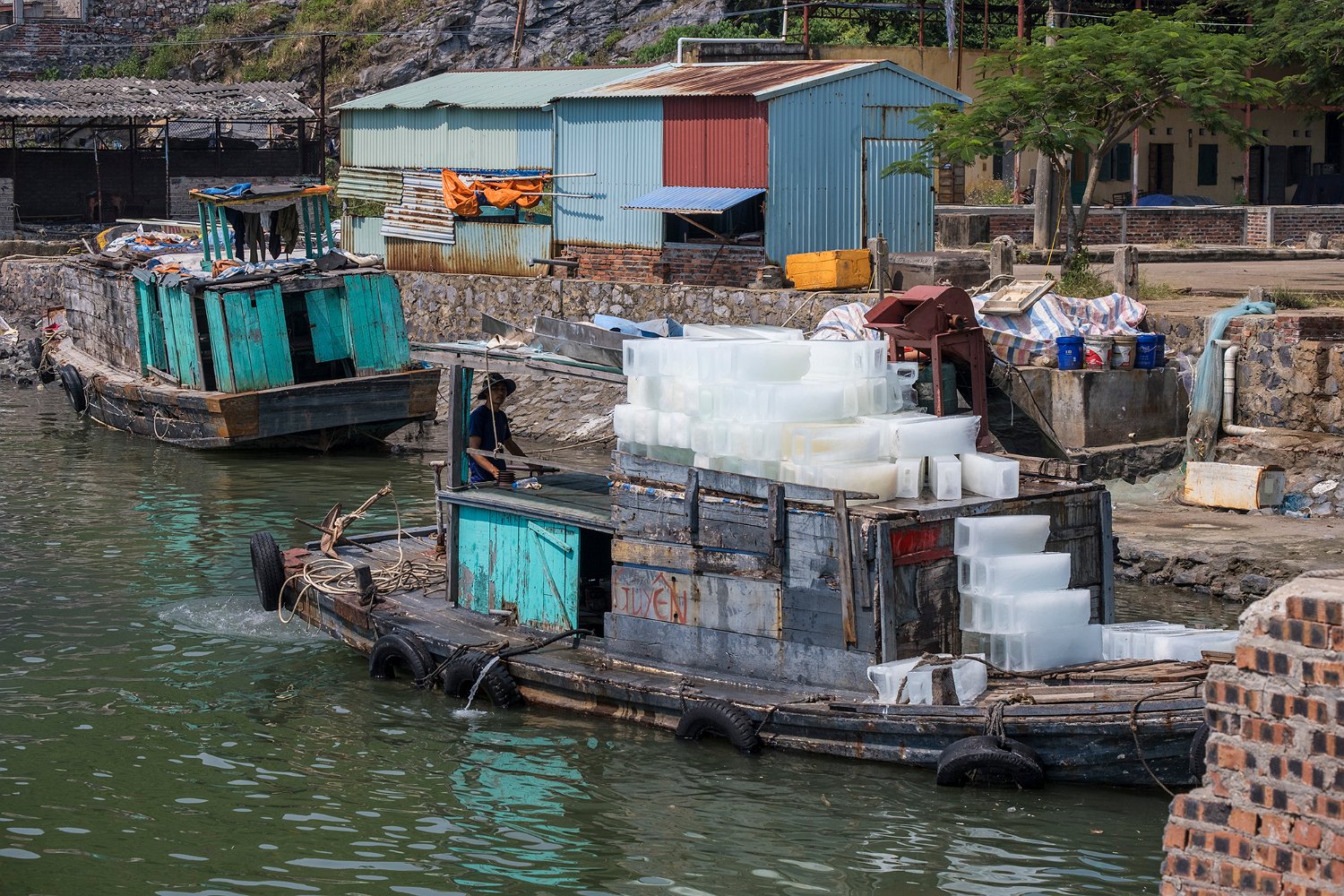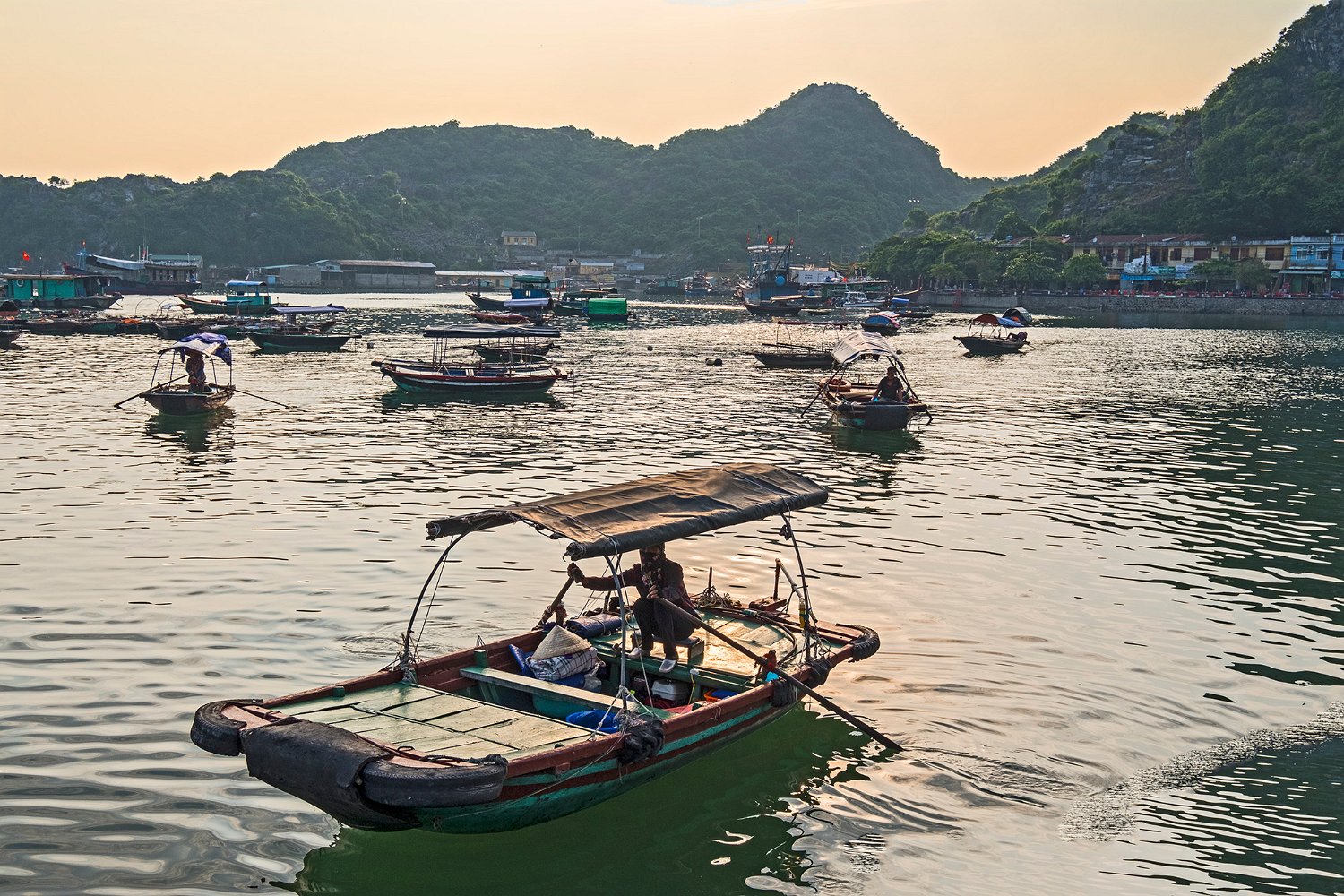 Le port de Cat Ba occupe une grande partie de la baie. On y trouve des habitats flottants de pêcheurs au milieu de bateaux de pêche traditionnels ou industriels. Des fabriques de nuoc mân occupent une partie des quais et des bâtiments.