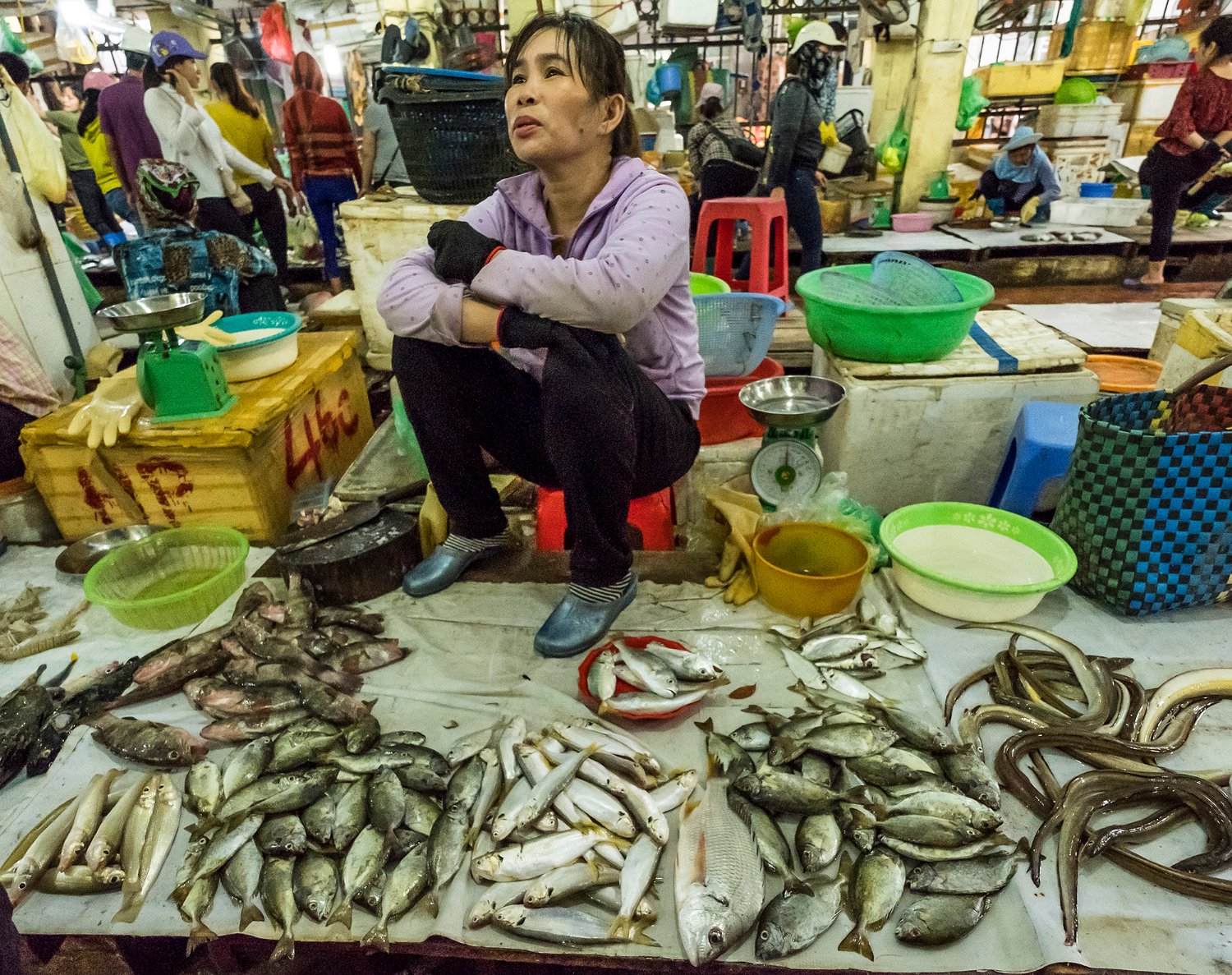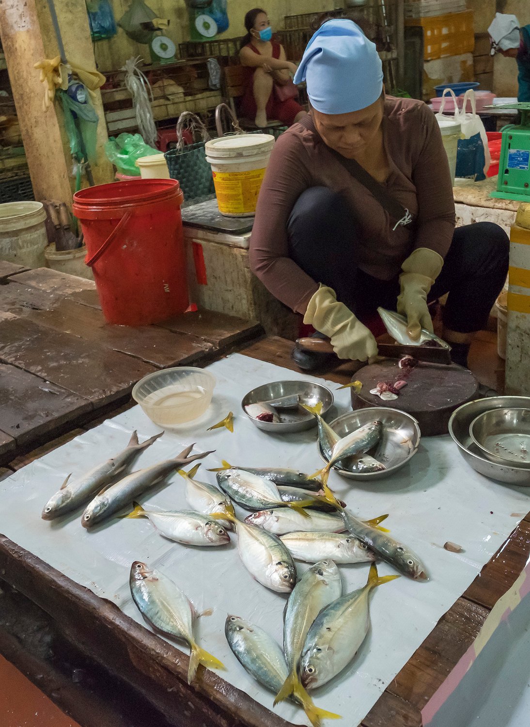 Produits de la mer  au marché de Cat Ba ( crevettes mantes à gauche,  poissons) Produits de la mer  au marché de Cat Ba (poissons) Produits de la mer  au marché de Cat Ba (poissons) Produits de la mer  au marché de Cat Ba (poissons)