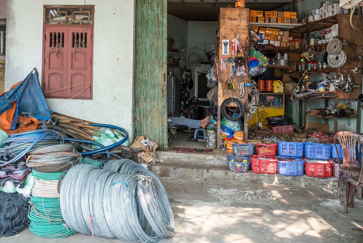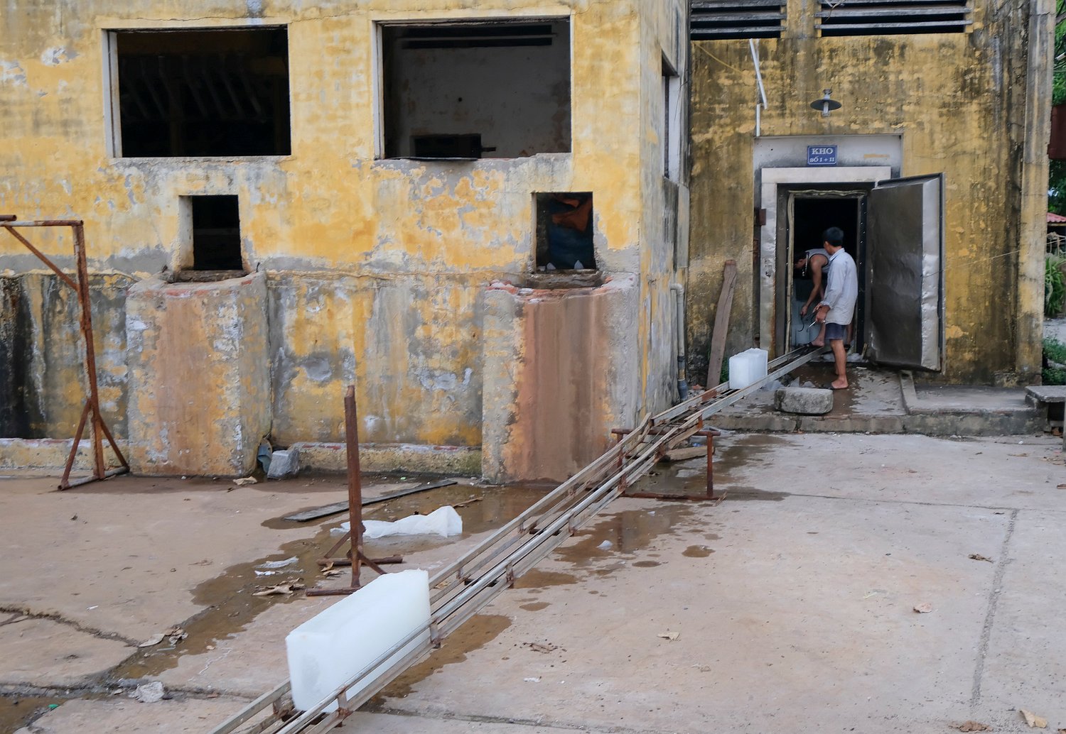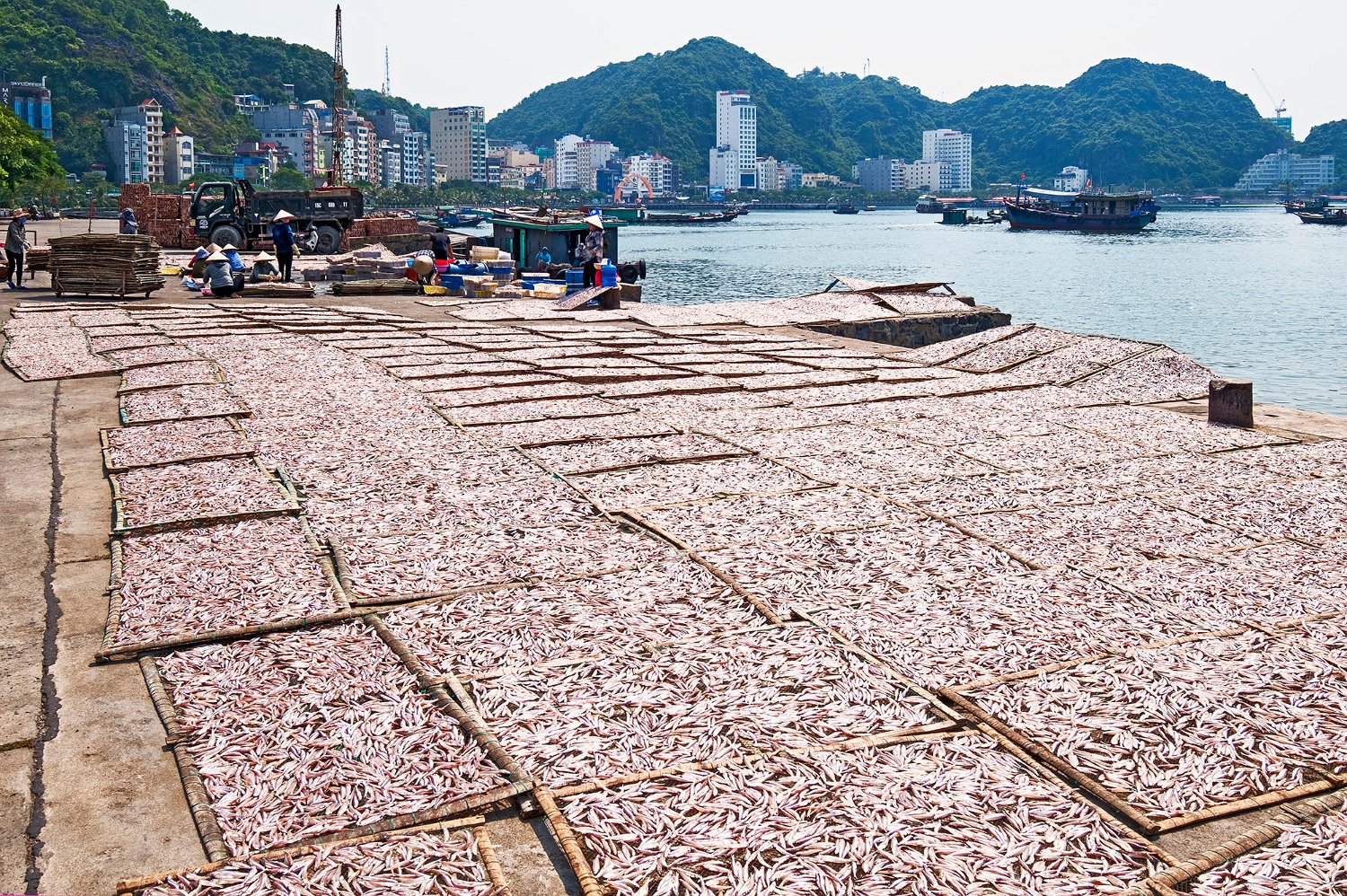 Disposition des claies sur le quai du port Claies en cours de séchage Poissons utilisés pour la fabrication du nuoc mâm (anchois) Fabrique de nuoc mâm