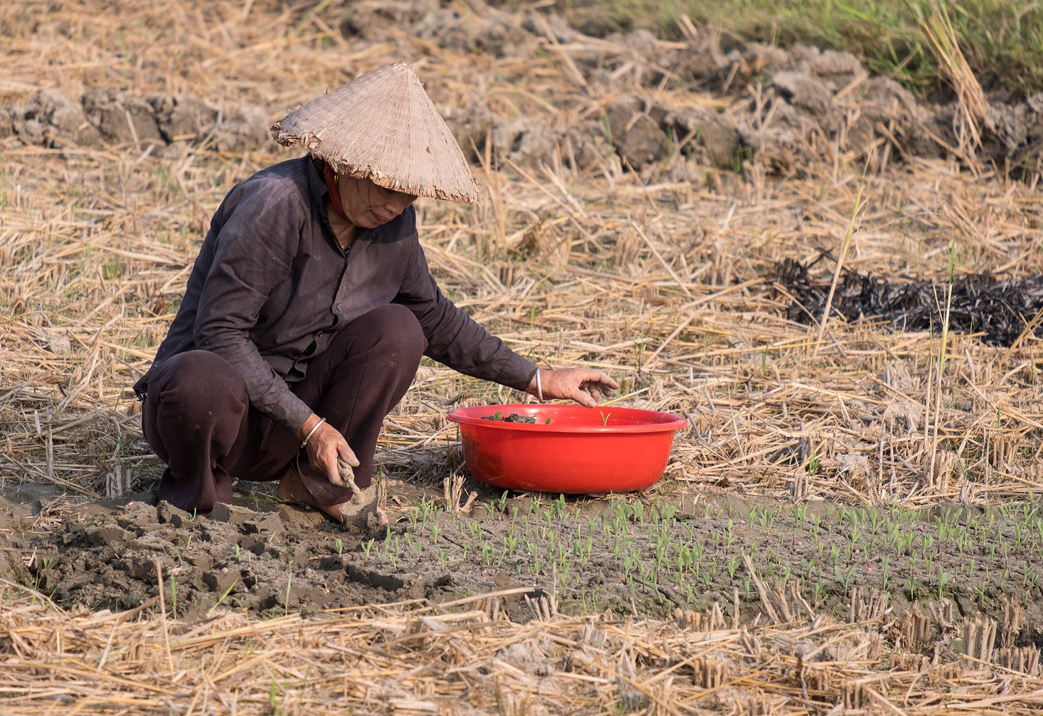 Paysanne repiquant du maïs