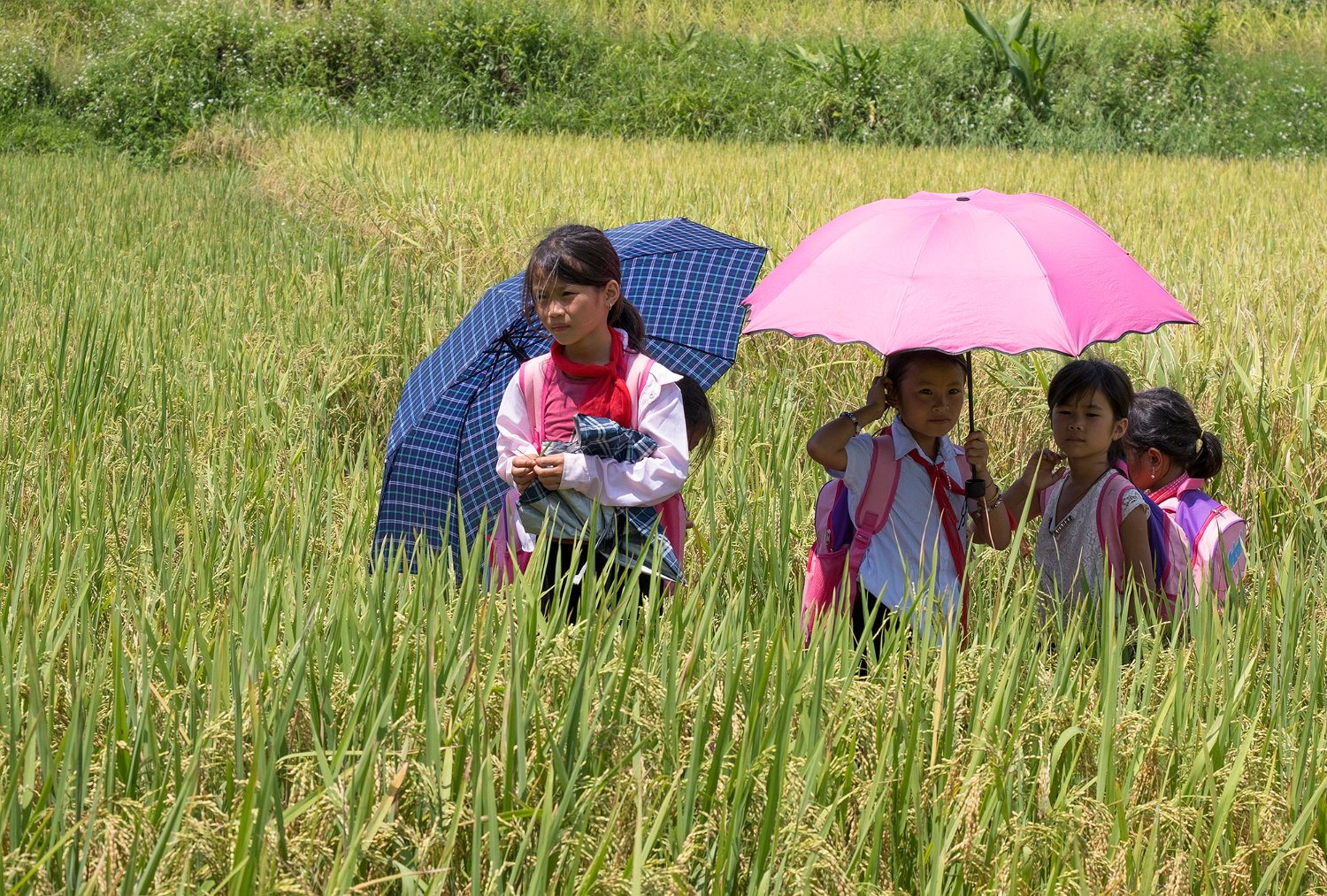 Fillettes interrompues en train de ramasser des crabes de rizière