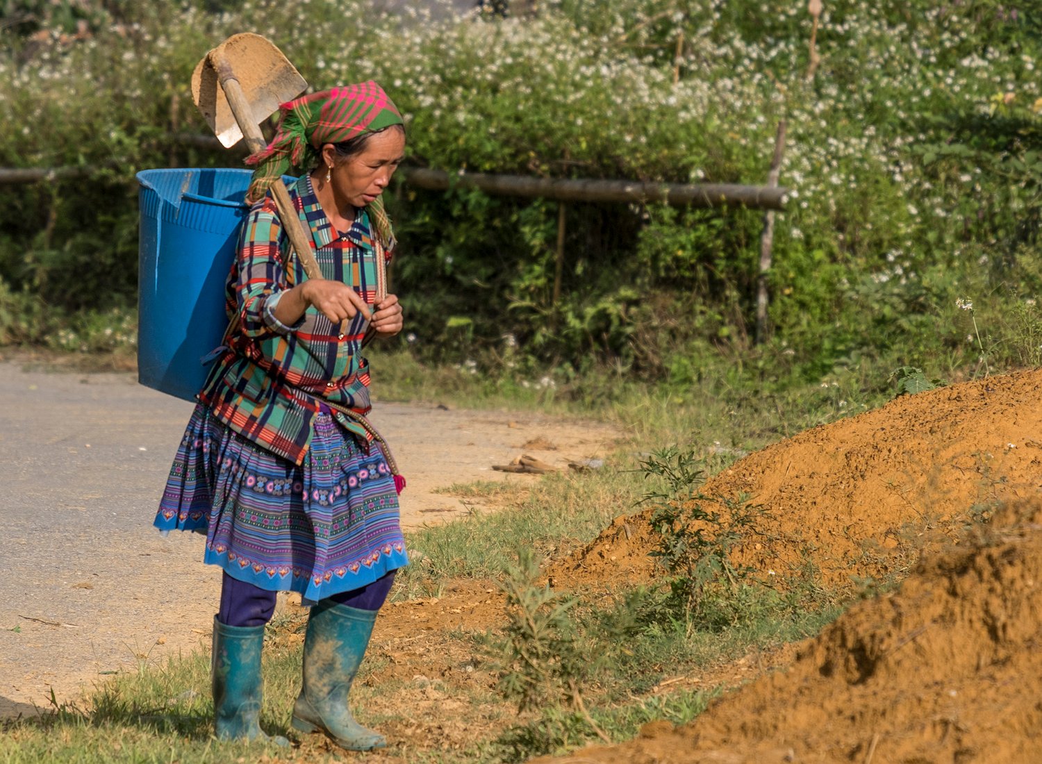 Femme Hmong partant aux champs