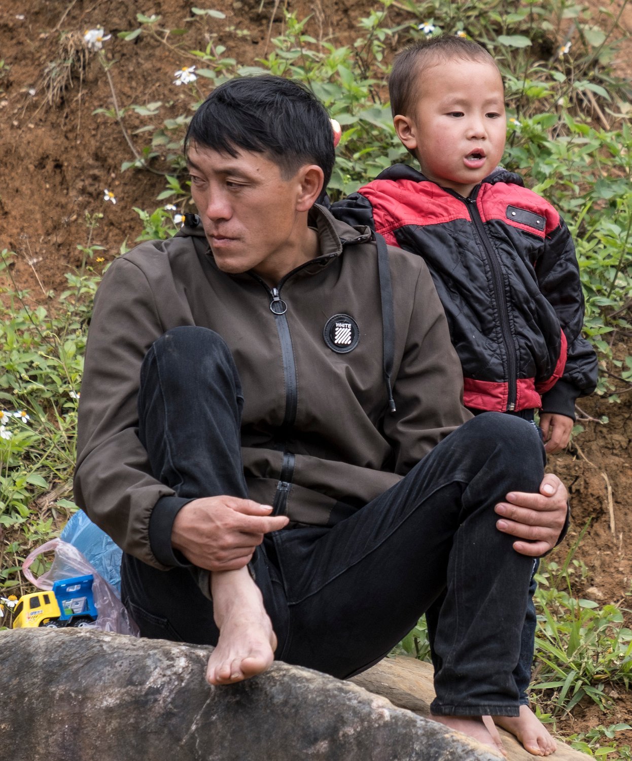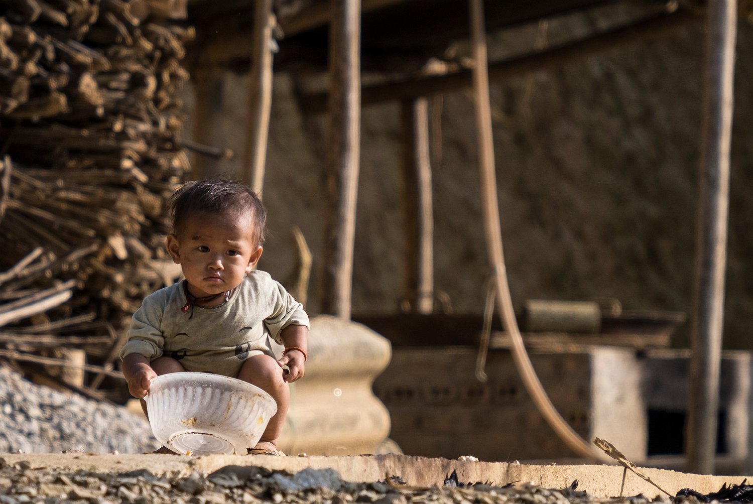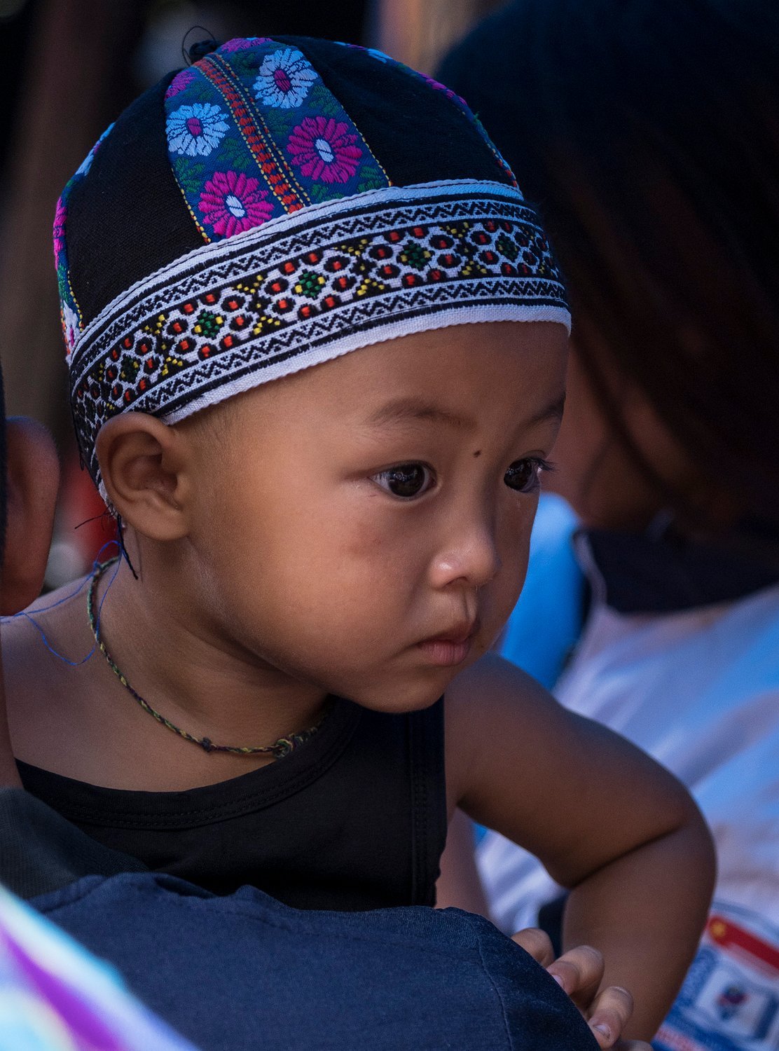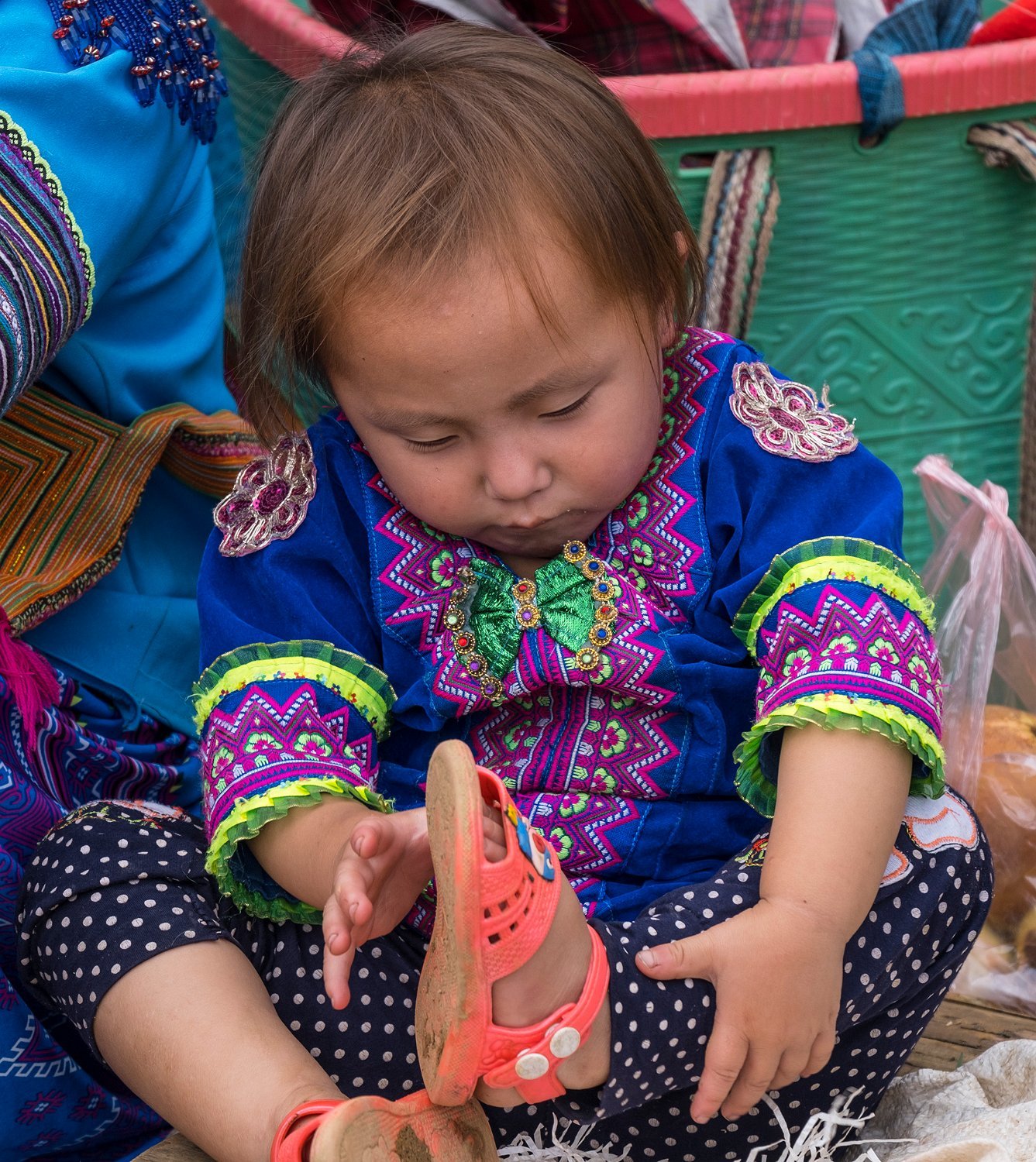 Bébé Hmong jouant avec ses chaussures