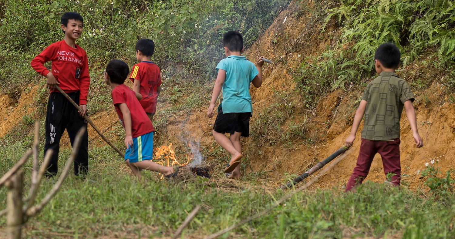 Enfants jouant avec le feu