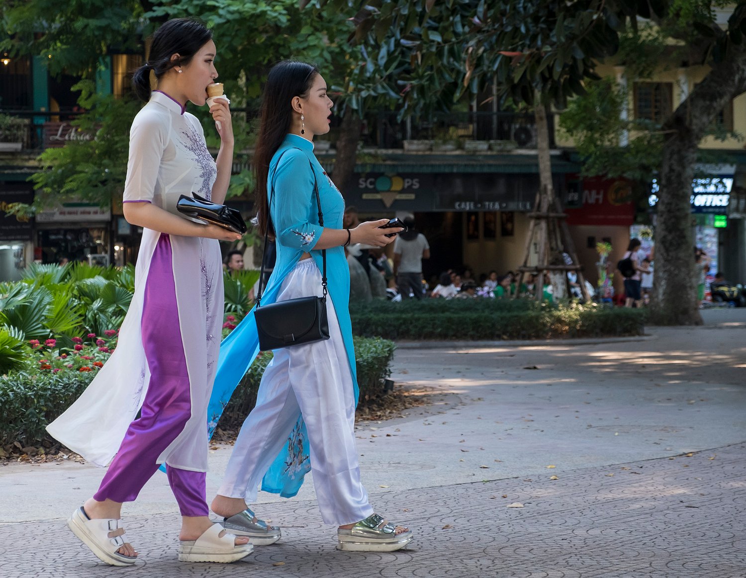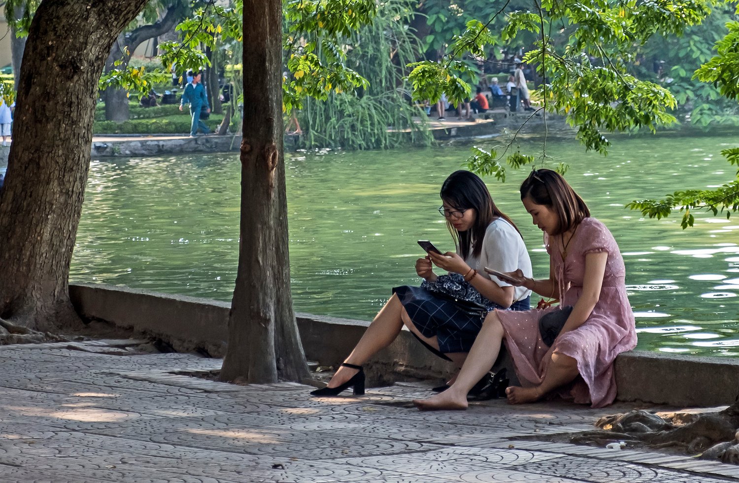 Jeunes femmes au bord du lac de Hoan Quom à Hanoï